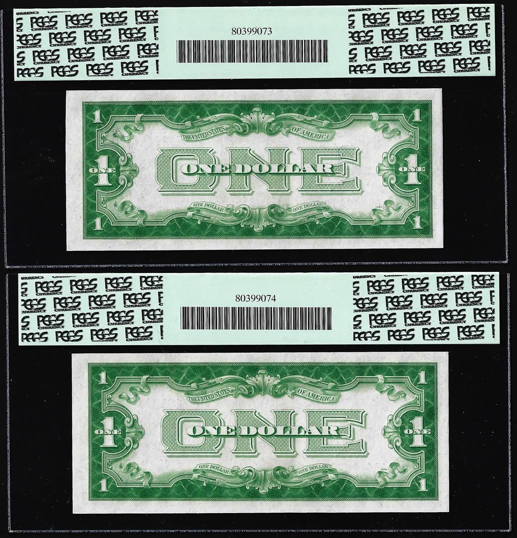 (2) Consecutive 1934 $1 Funnyback Silver Certificate Notes FR.1606 PCGS Gem New 65PPQ