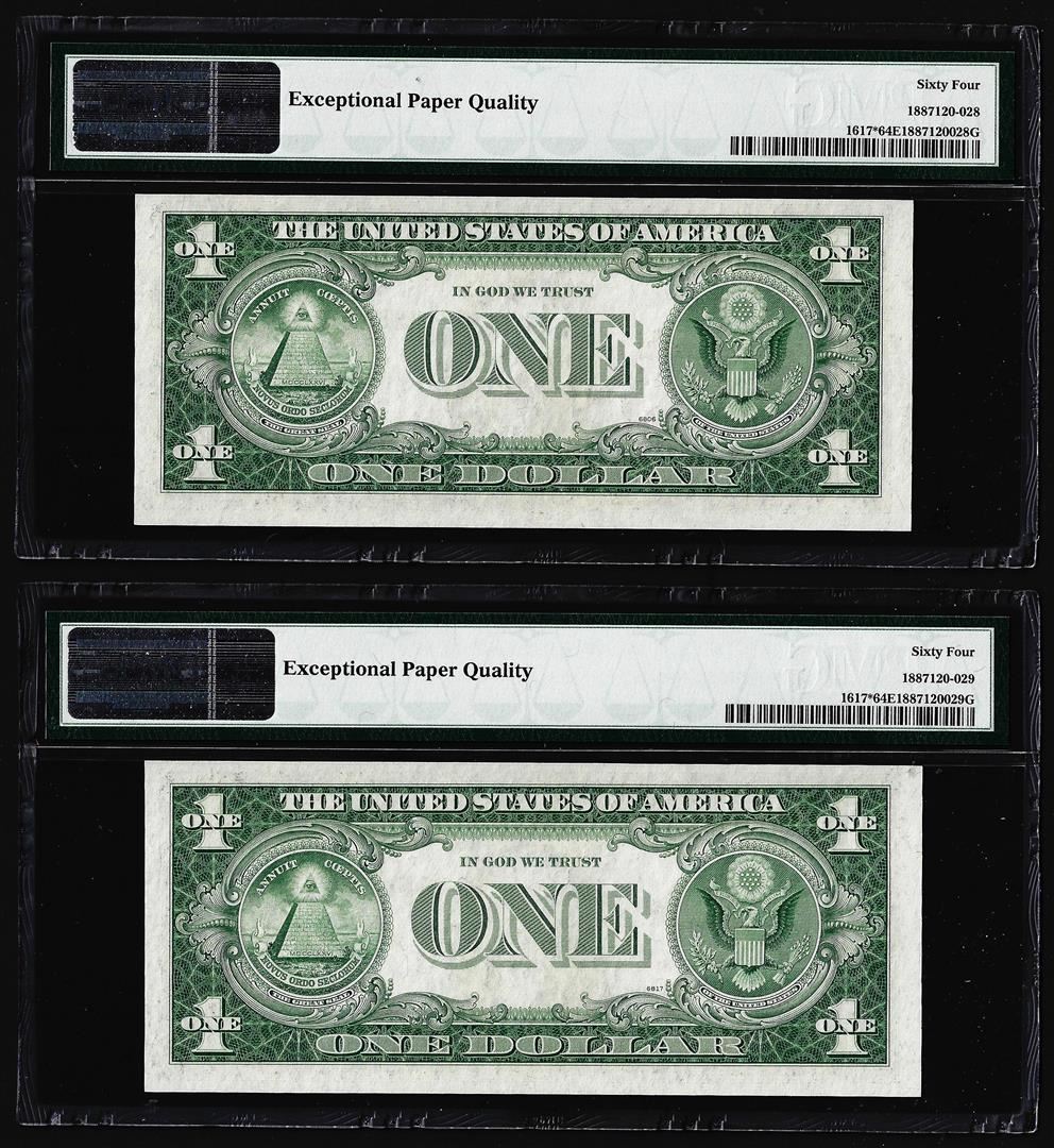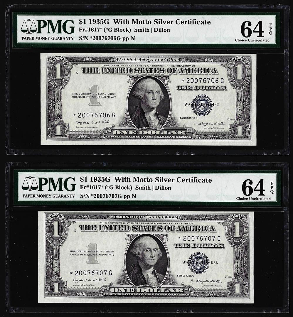 (2) Consecutive 1935G $1 Silver Certificate STAR Notes PMG Choice Uncirculated 64EPQ