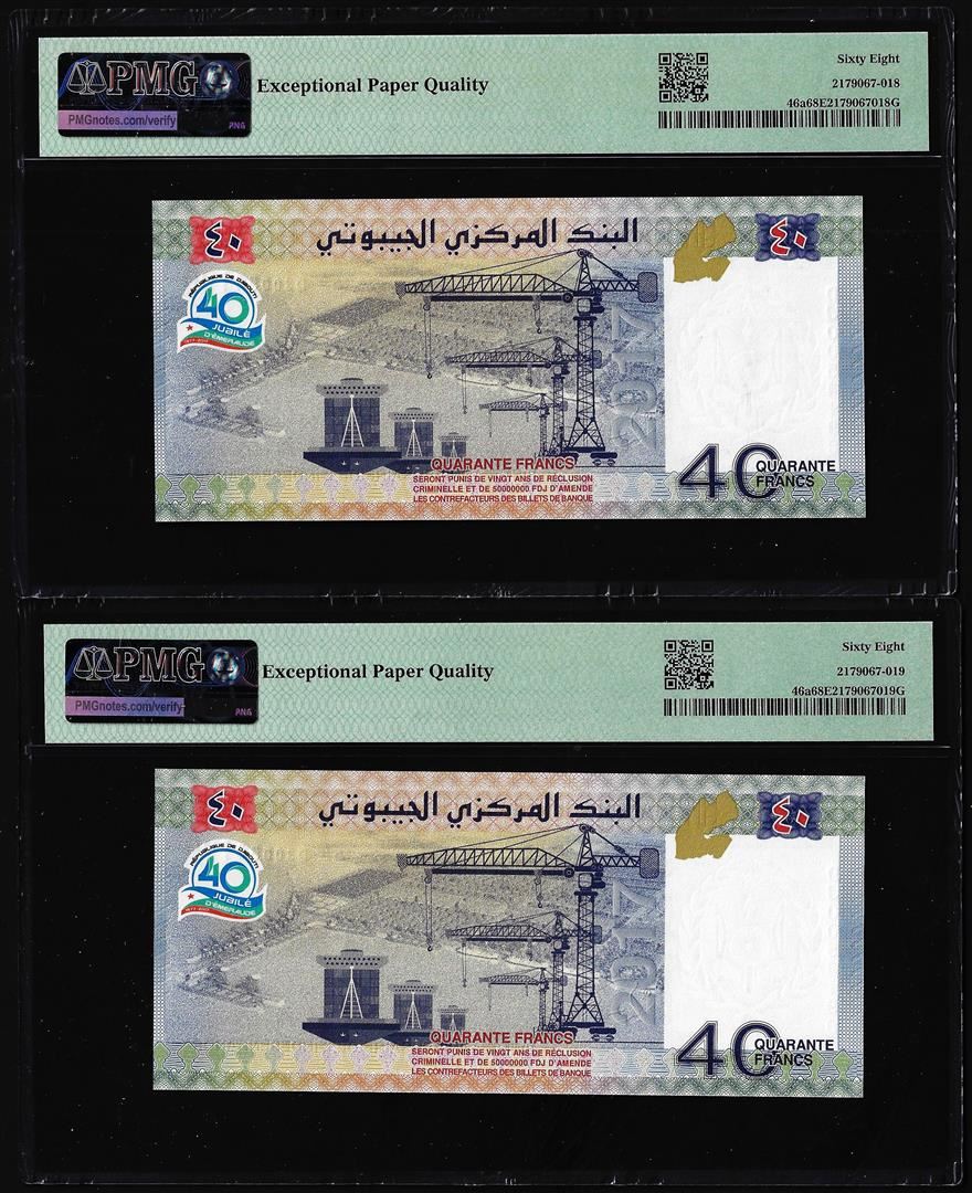 (2) Consecutive 2017 Djibouti 40 Francs Bank Notes PMG Superb Gem Uncirculated 68EPQ