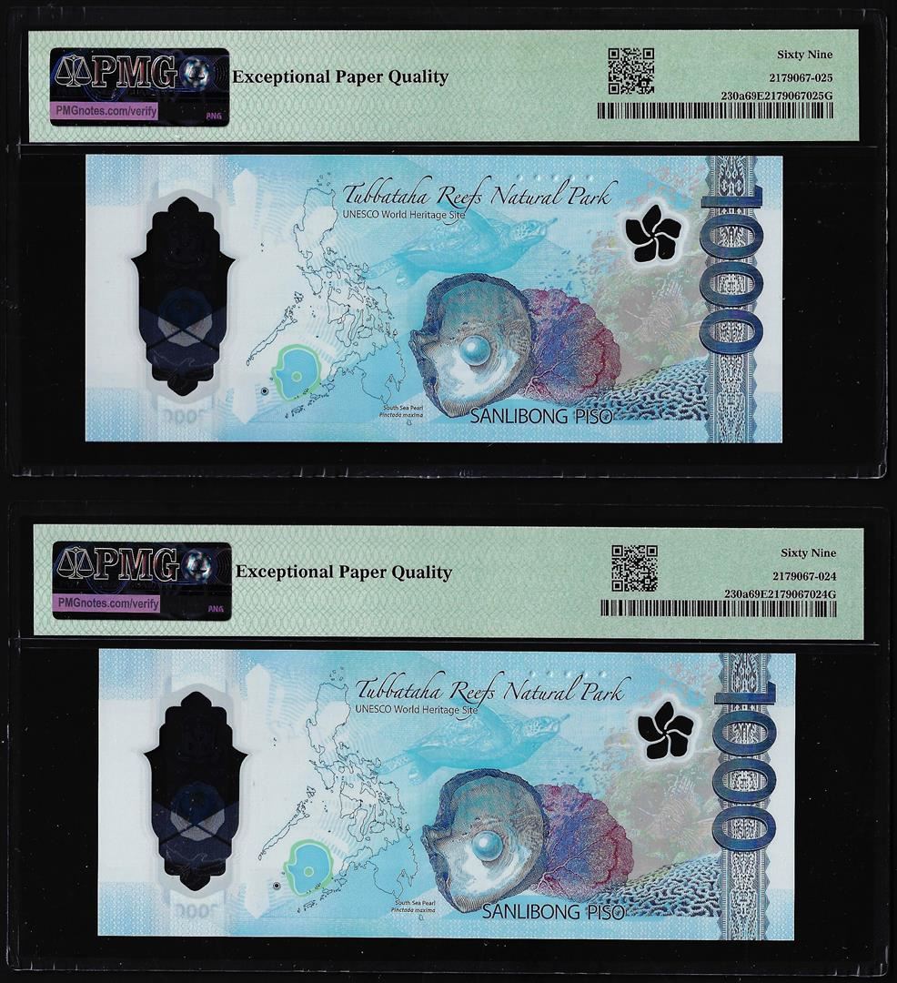 (2) Consecutive 2022 Philippines 1000 Piso Notes PMG Superb Gem Uncirculated 69EPQ