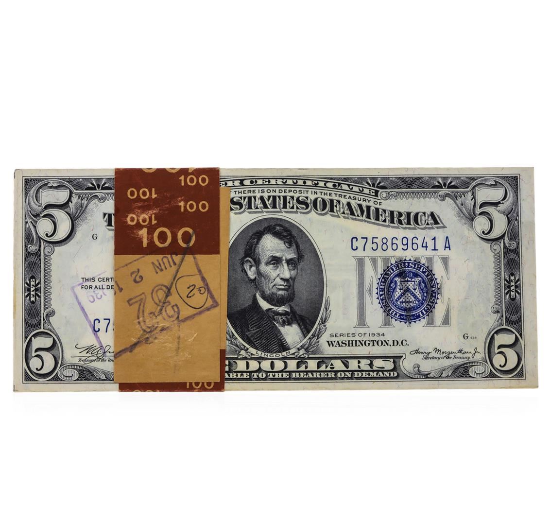One (20) Consecutive Serial 1934A $5 Silver Certificate Notes.
