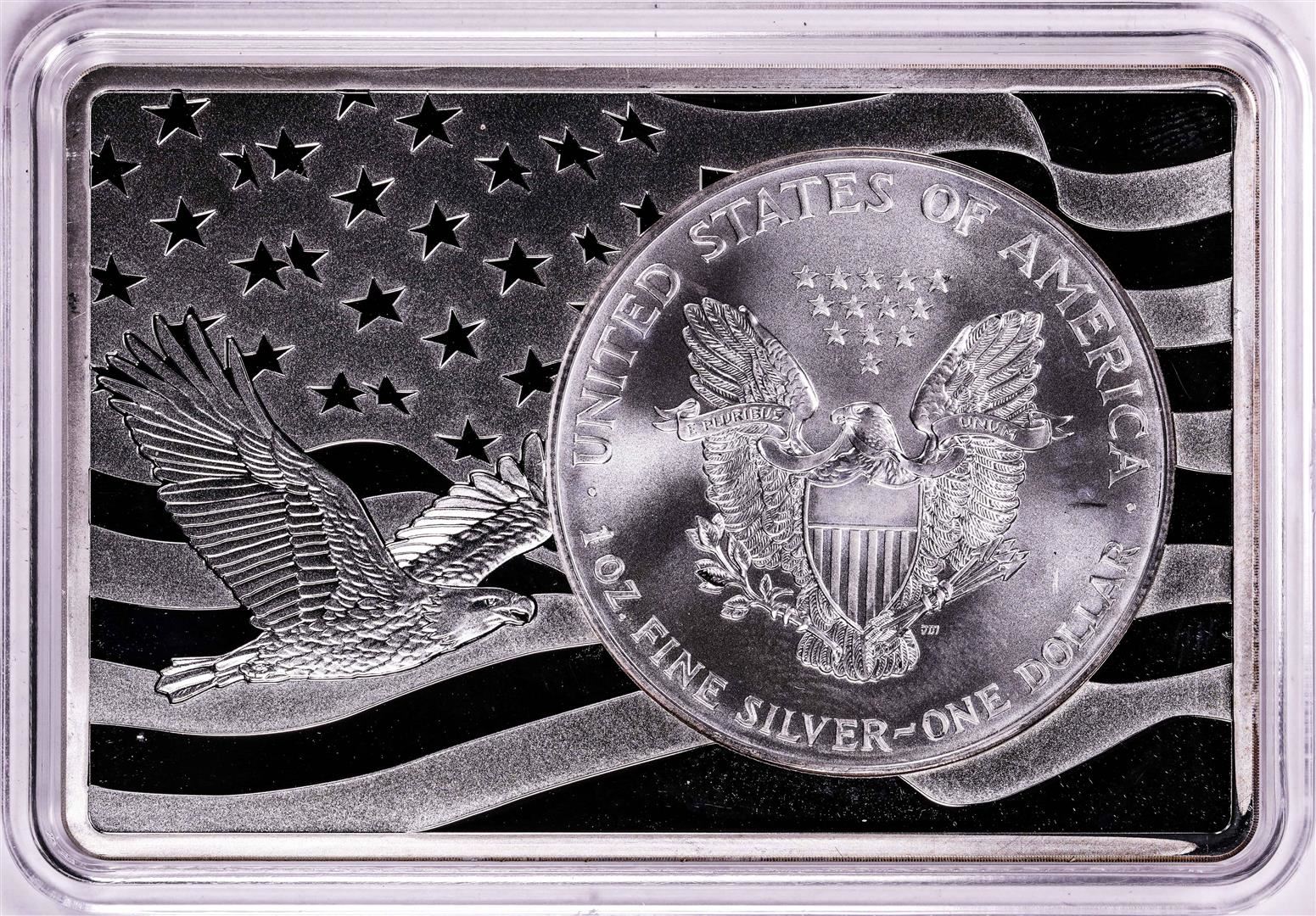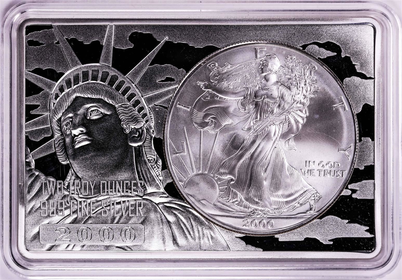 One 2000 $1 American Silver Eagle Coin & 2oz Silver Bar Set.