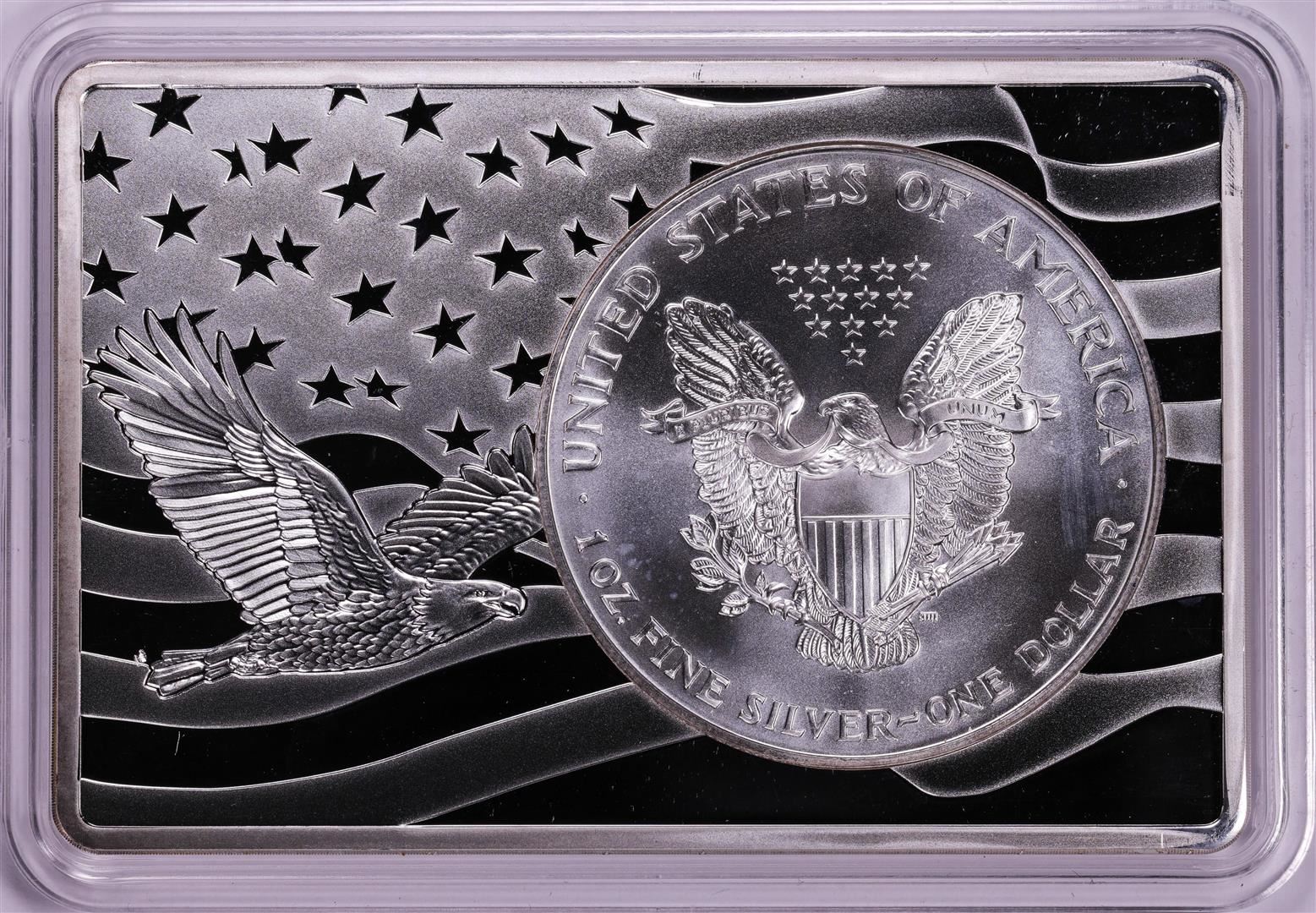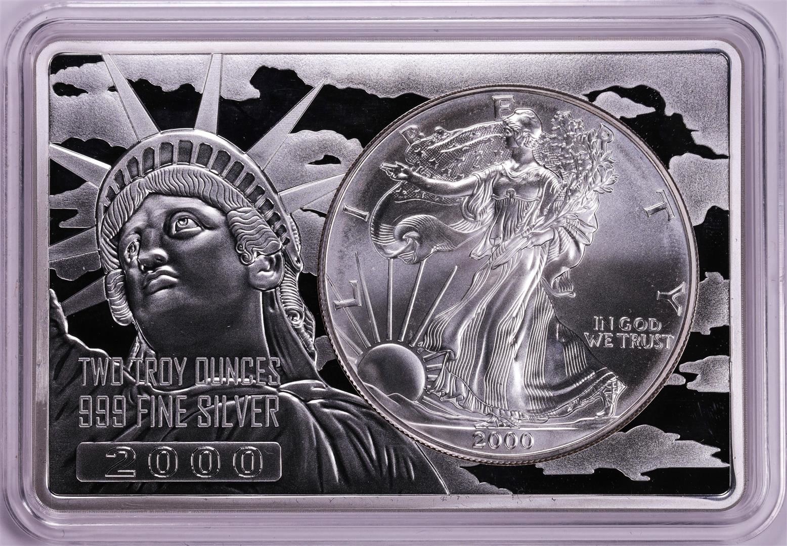 One 2000 $1 American Silver Eagle Coin & 2oz Silver Bar Set.