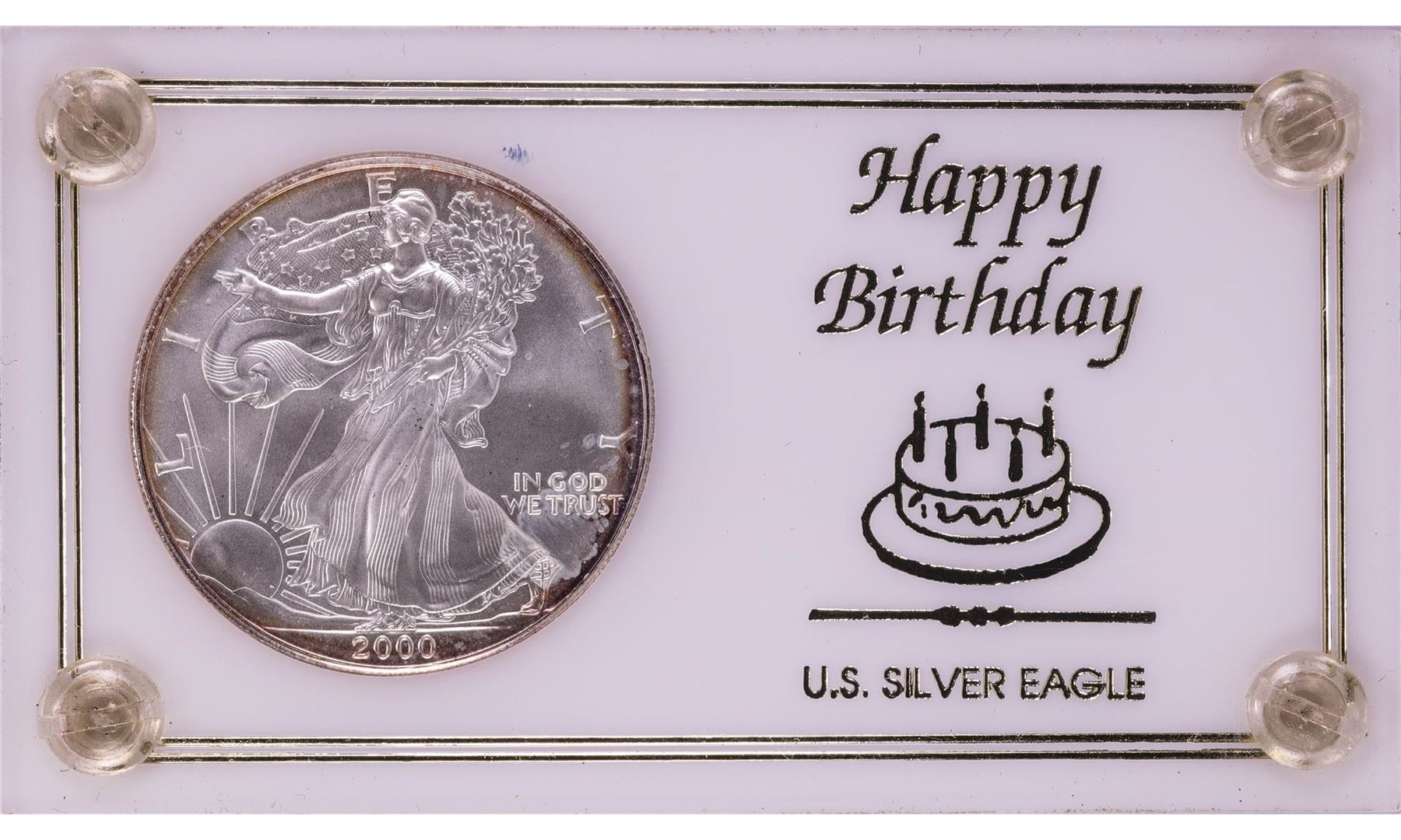 2000 $1 American Silver Eagle Coin in Happy Birthday Holder