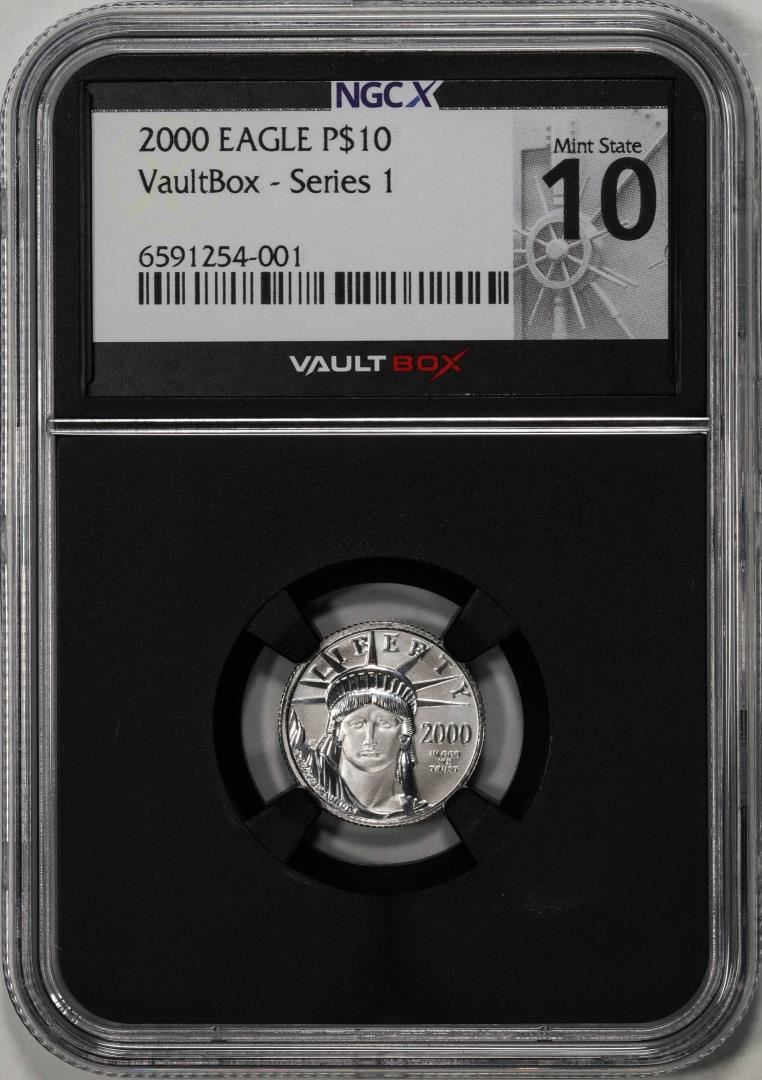 One 2000 $10 American Platinum Eagle Coin NGCX Mint State 10 VaultBox Series 1. NGCX Certified.