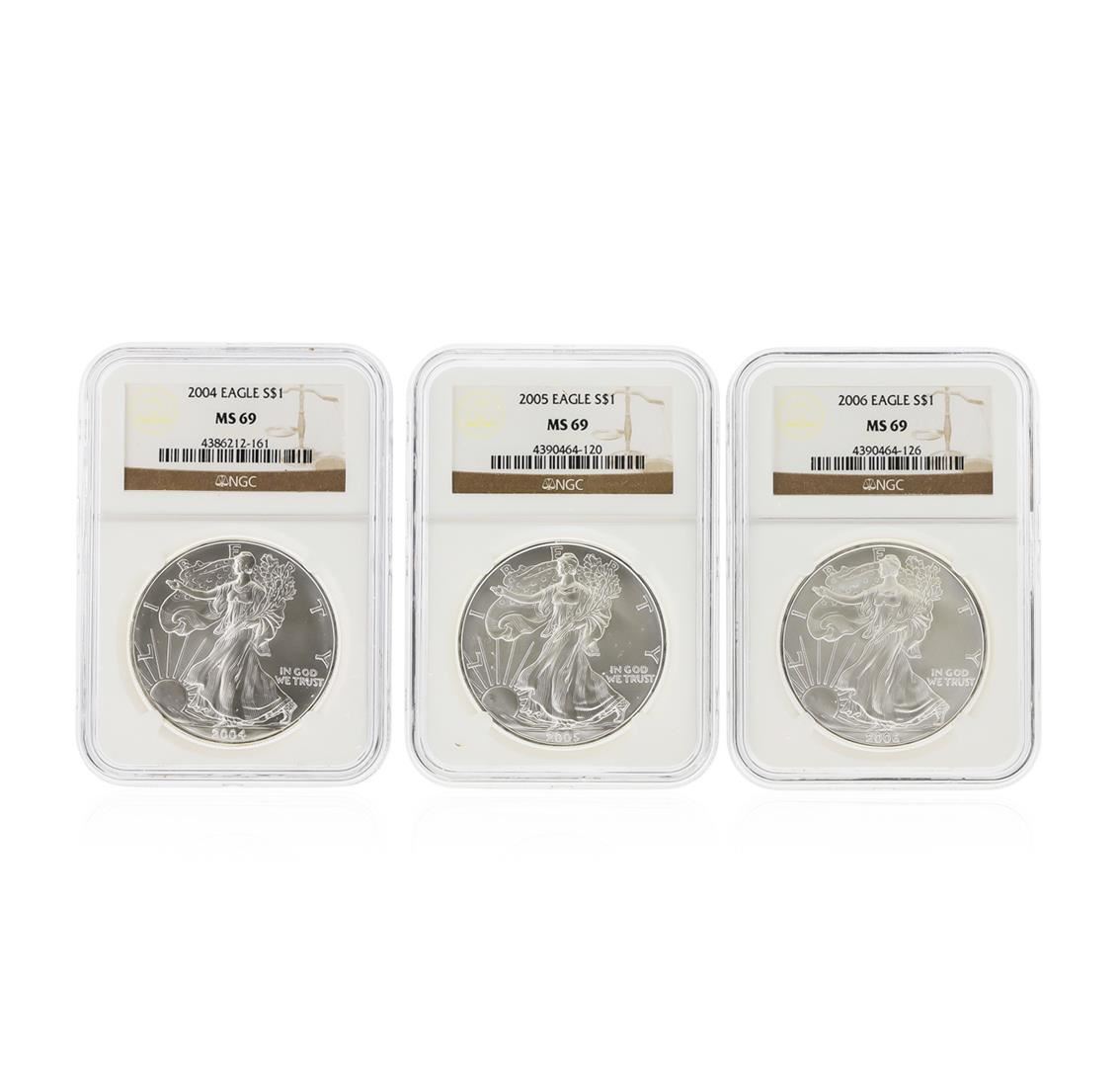 One 2000-2003 $1 American Silver Eagle Coin Set NGC MS69. NGC Certified.