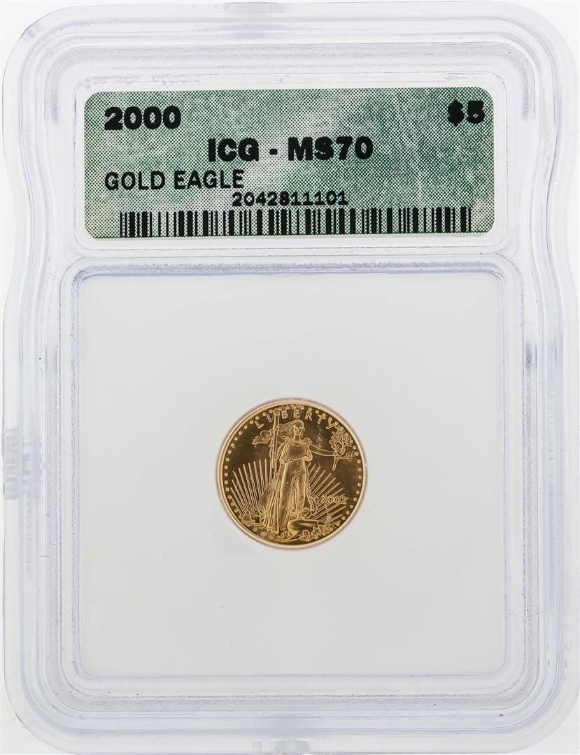 One 2000 $5 American Gold Eagle Coin ICG MS70. ICG Certified.