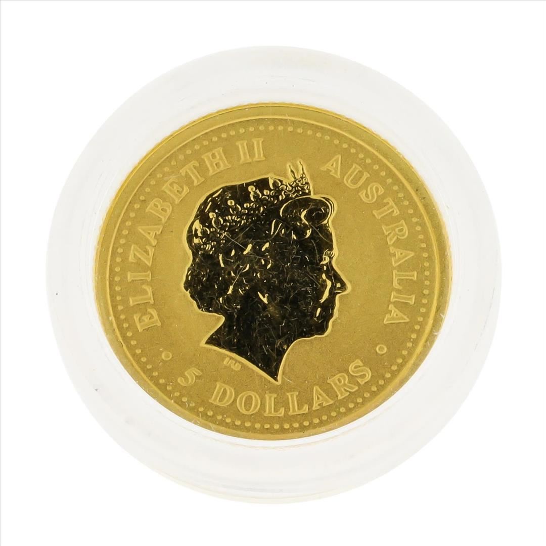One 2000 $5 Australia 1/20 oz Lunar Year of the Dragon Gold Coin BU.
