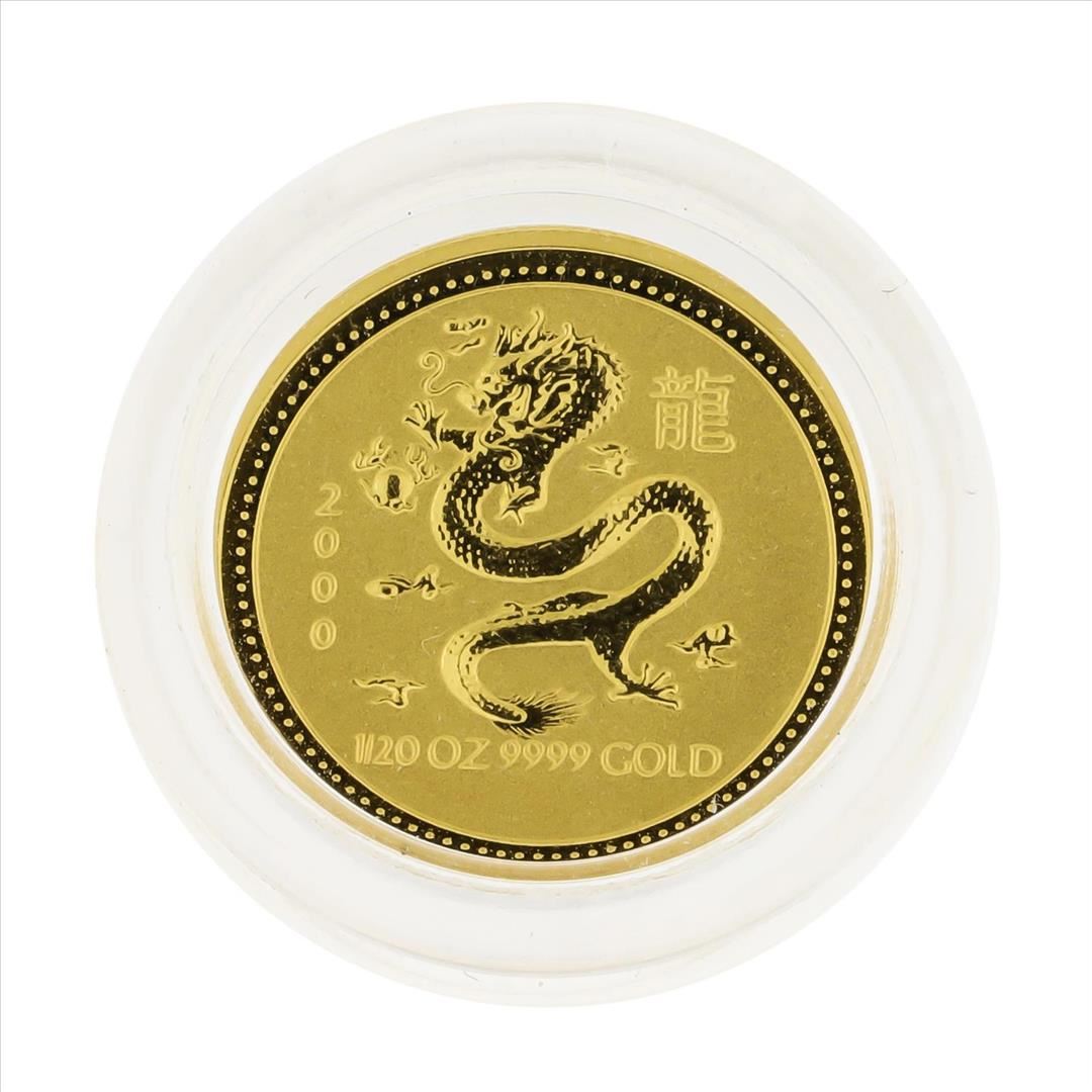One 2000 $5 Australia 1/20 oz Lunar Year of the Dragon Gold Coin BU.