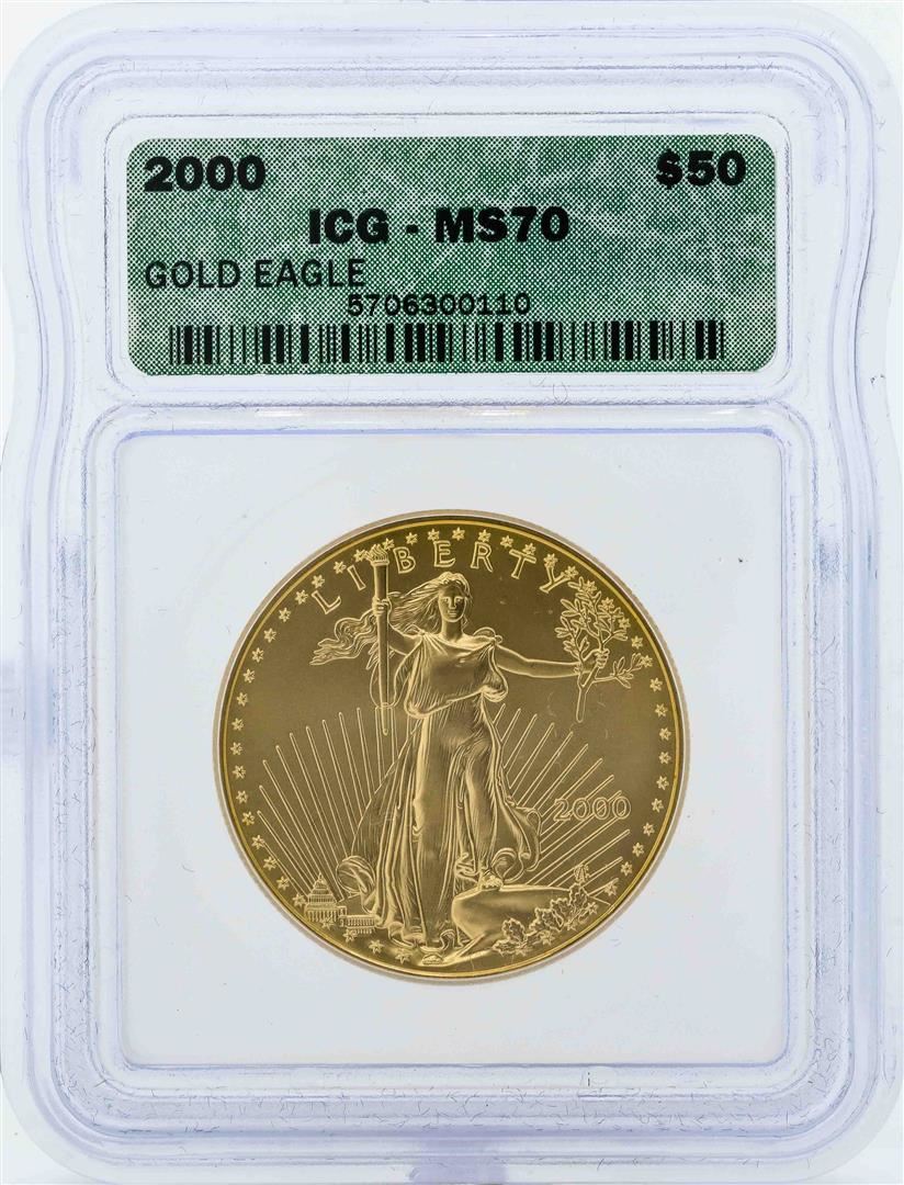 One 2000 $50 American Gold Eagle Coin ICG MS70. ICG Certified.