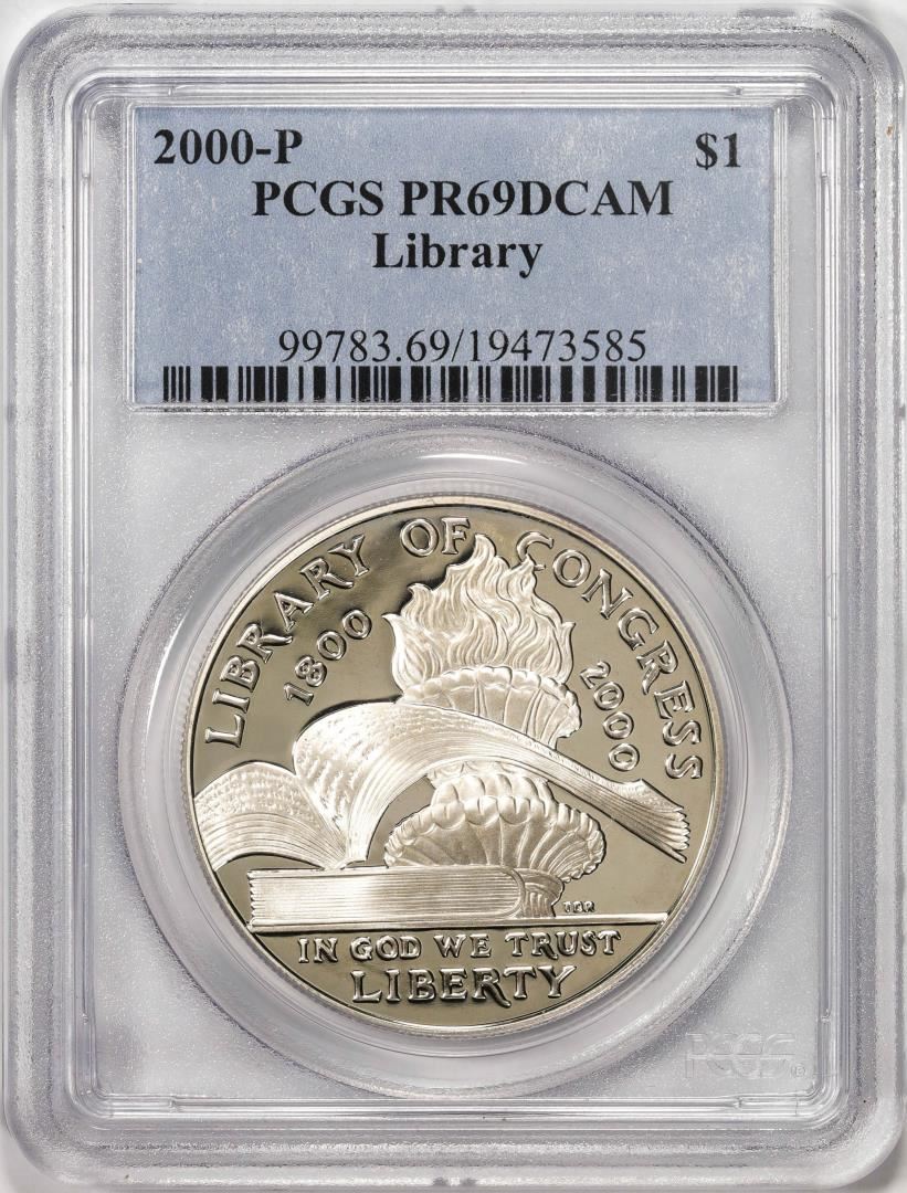 2000-P $1 Proof Library of Congress Commemorative Silver Dollar Coin PCGS PR69DCAM