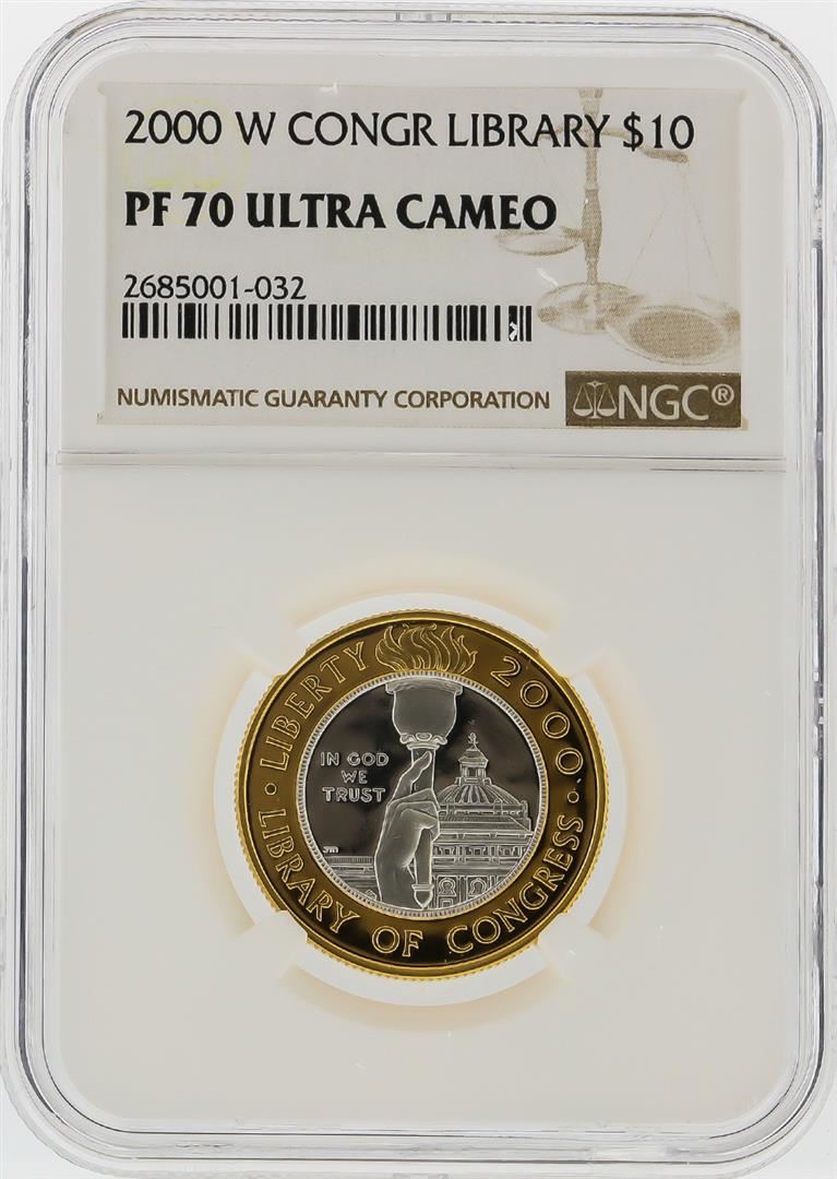 One 2000-W $10 Library of Congress Gold & Platinum Coin NGC Graded PF70 Ultra Cameo. NGC Certified.