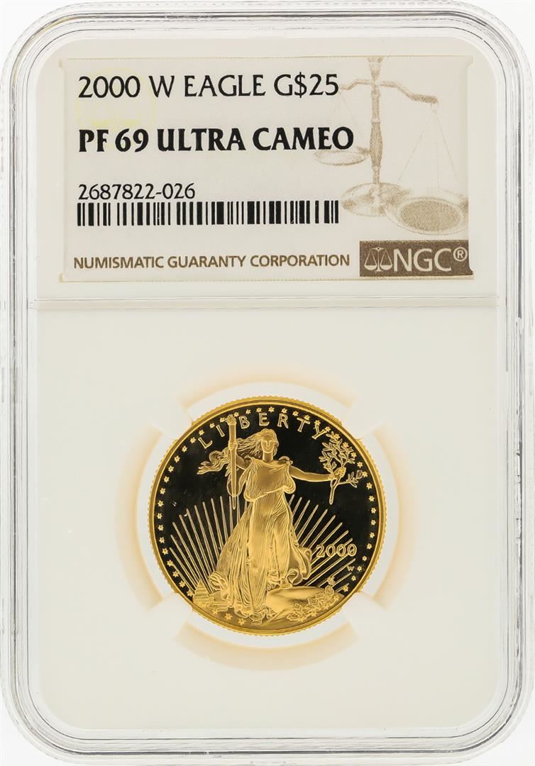 One 2000-W $25 American Gold Eagle Coin NGC PF69 Ultra Cameo. NGC Certified.