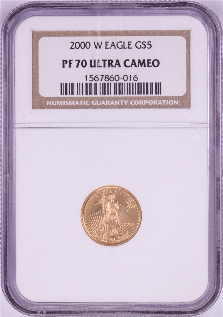 One 2000-W $5 Proof American Gold Coin NGC PF70 Ultra Cameo. NGC Certified.