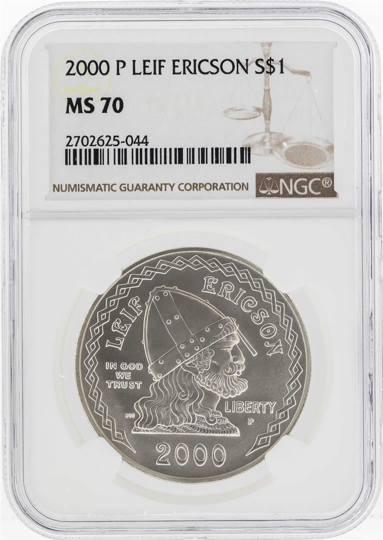 One 2000P $1 Leif Ericson Silver Coin NGC MS70. NGC Certified.