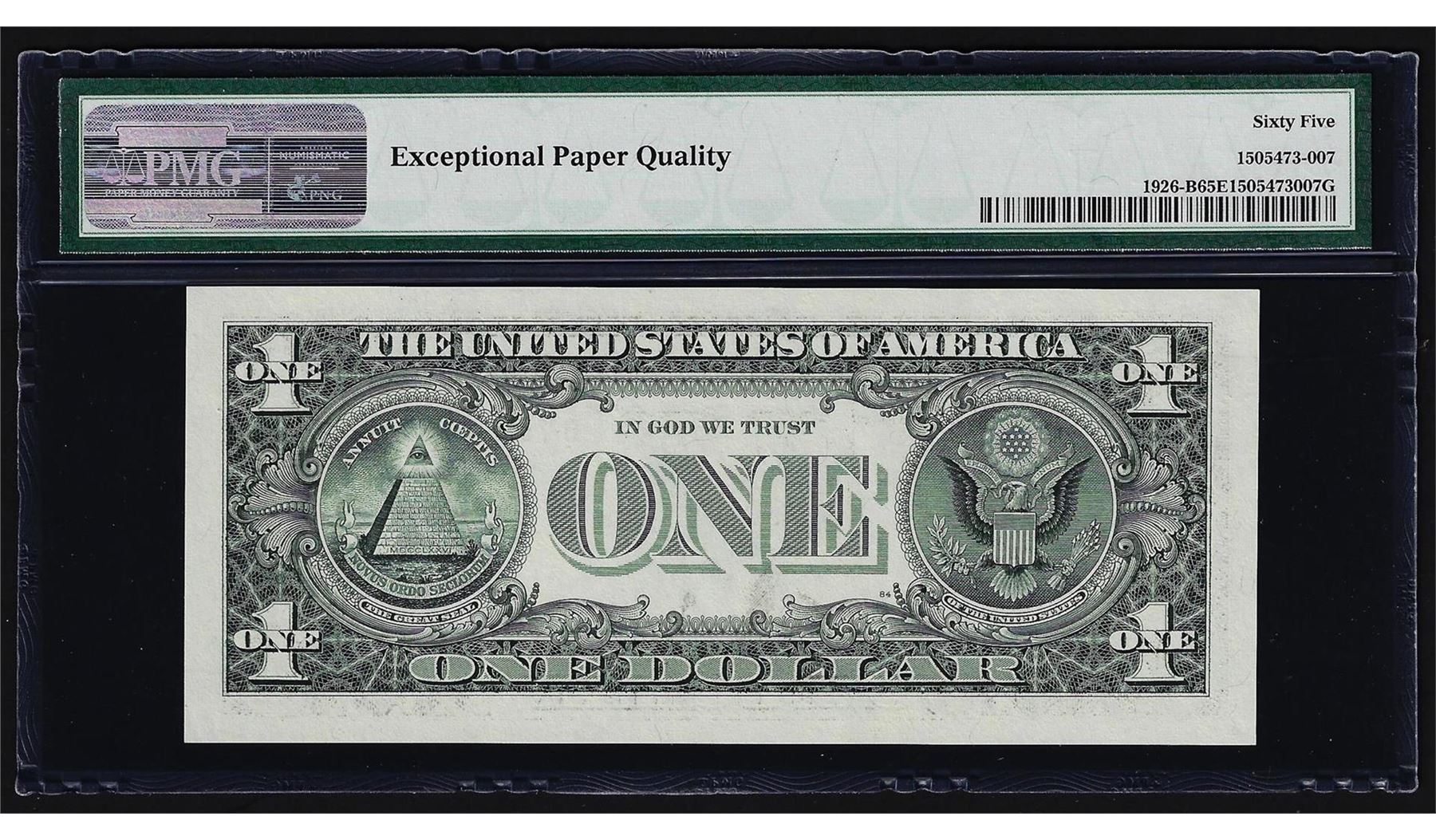 One 2001 $1 Federal Reserve Note Mismatched Serial Number ERROR PMG Gem Unc. 65EPQ. PMG Certified.