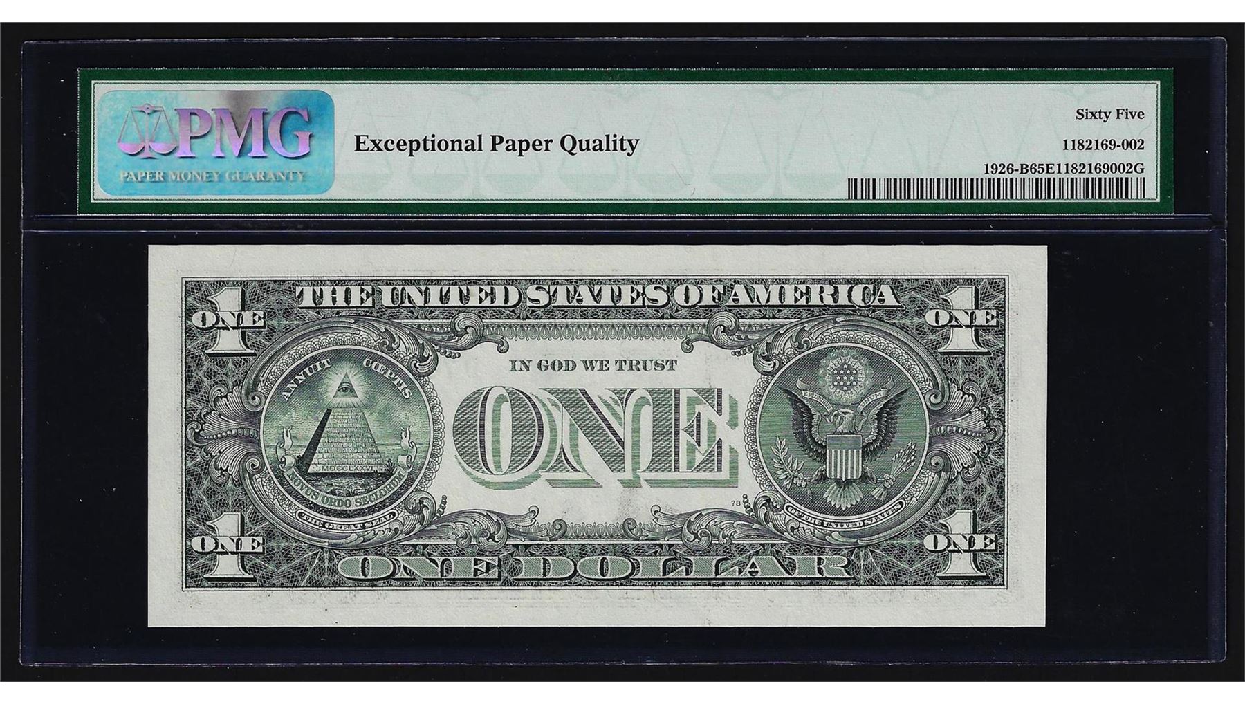 One 2001 $1 Federal Reserve Note Mismatched Serial Number ERROR PMG Gem Unc. 65EPQ. PMG Certified.
