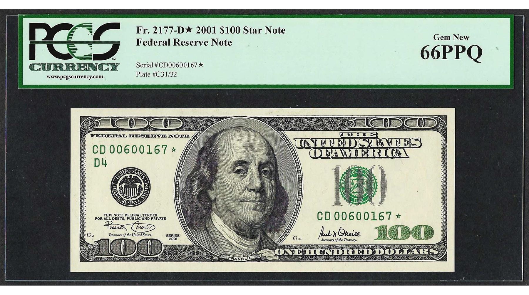 2001 $100 Federal Reserve STAR Note PCGS Gem New 66PPQ