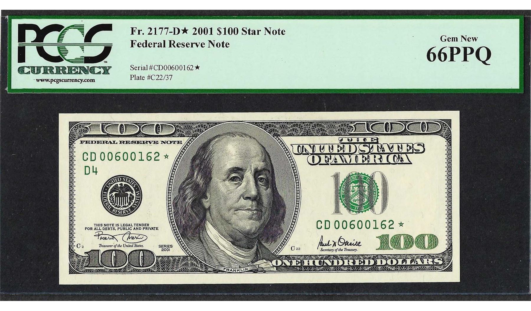 2001 $100 Federal Reserve STAR Note PCGS Gem New 66PPQ