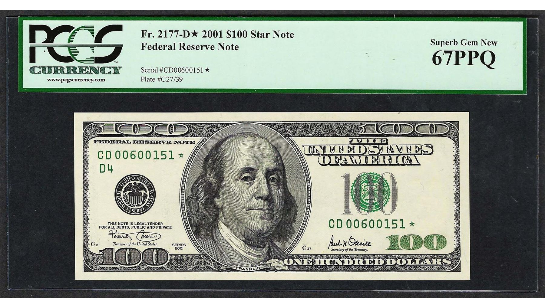 2001 $100 Federal Reserve STAR Note PCGS Superb Gem New 67PPQ