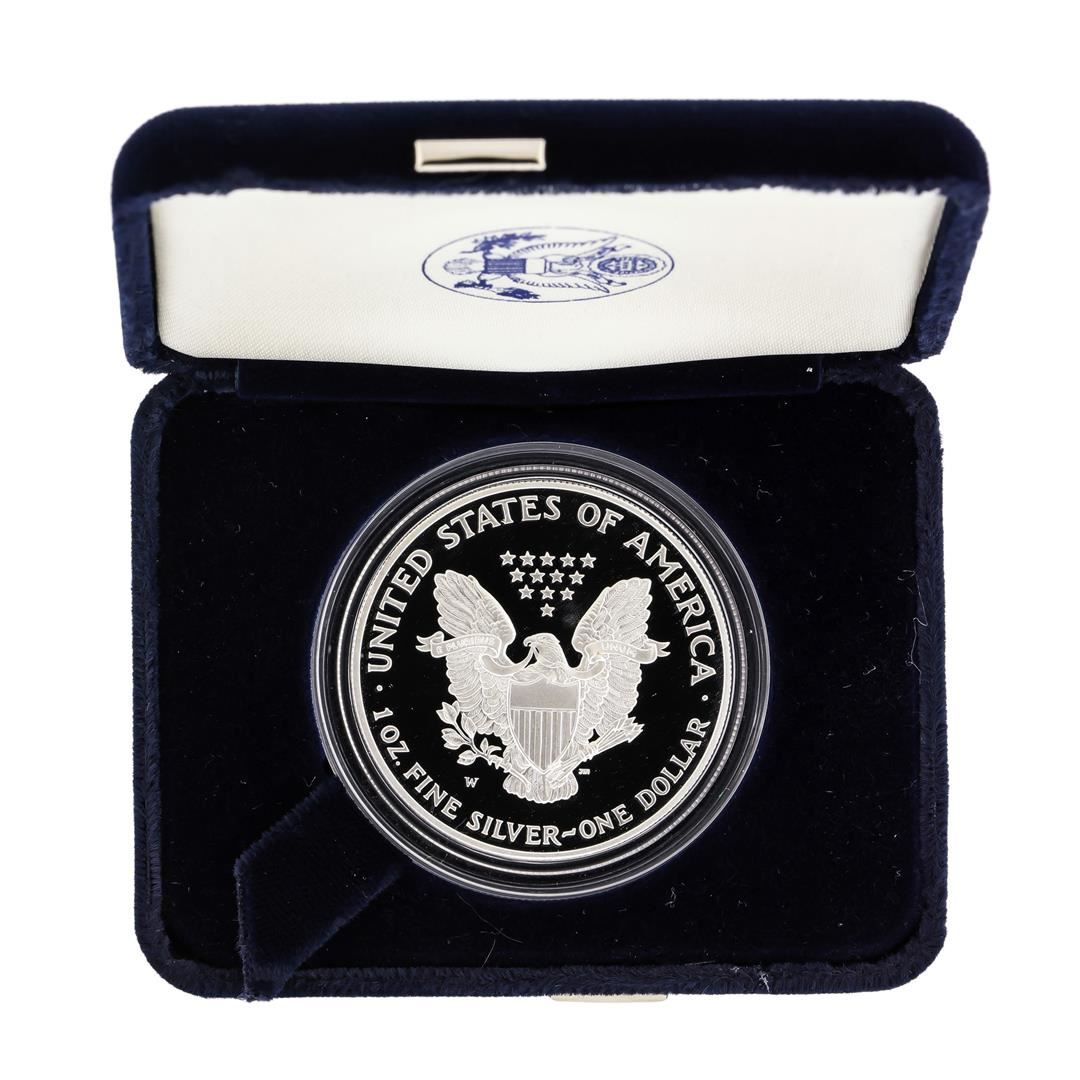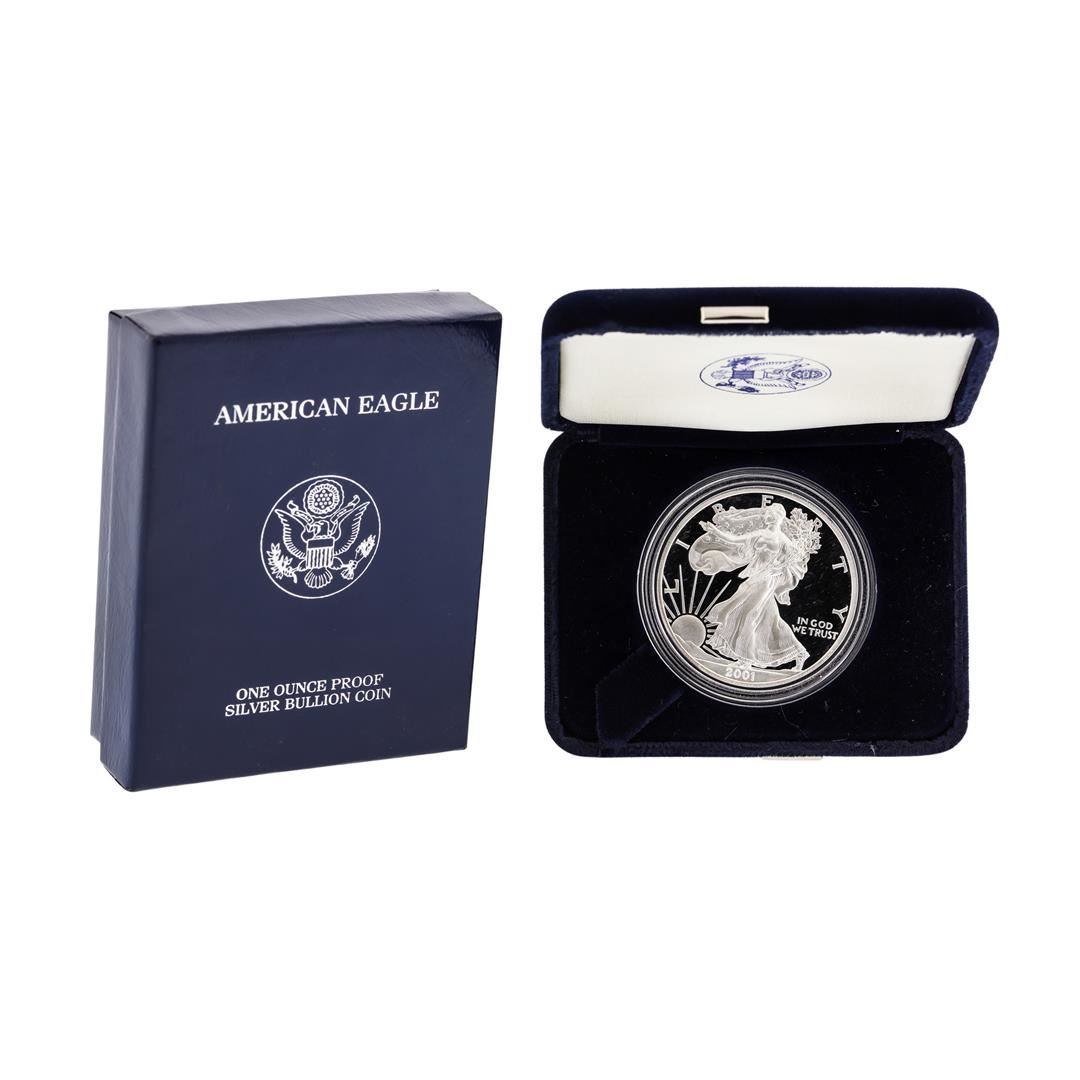One 2001 1oz American Silver Eagle Proof Coin with Box.