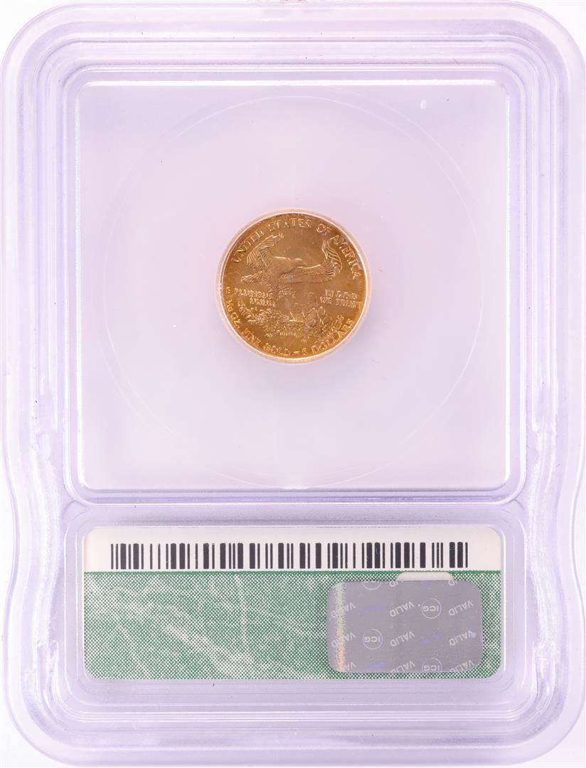 One 2001 $5 American Gold Eagle Coin ICG MS69. ICG Certified.