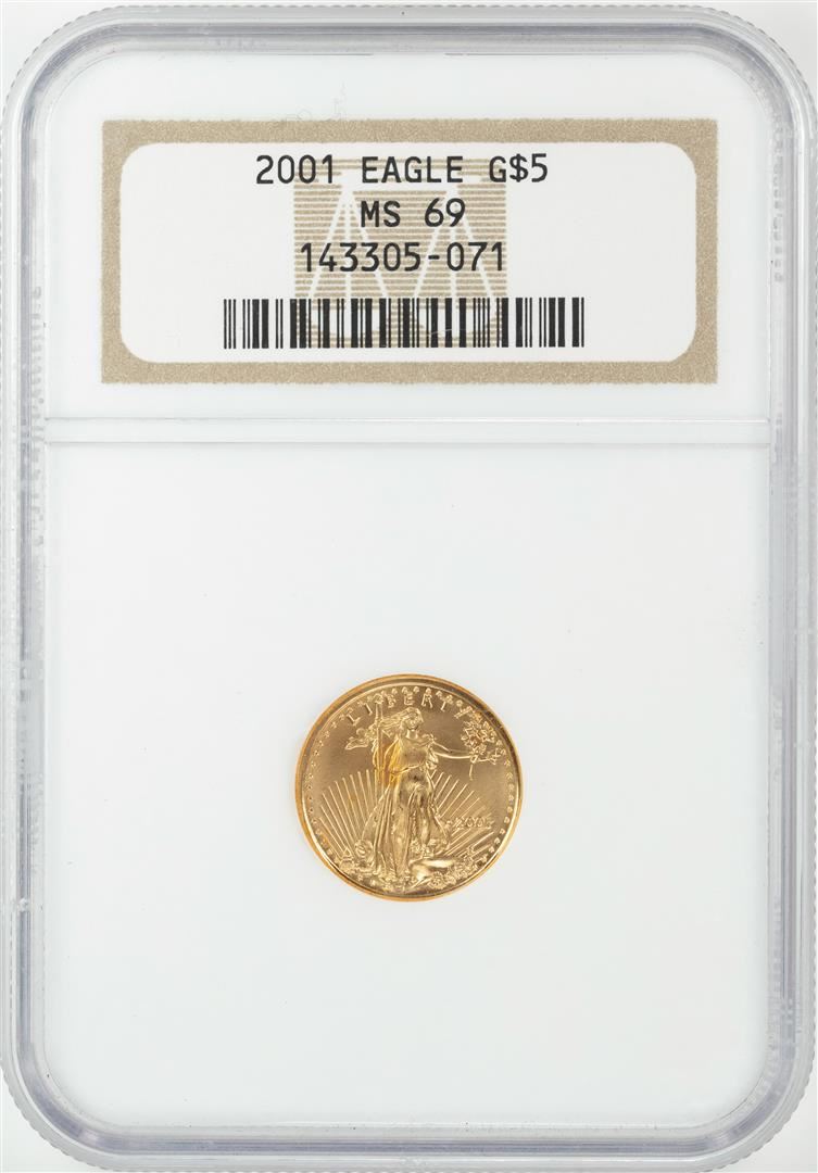 One 2001 $5 American Gold Eagle Coin NGC MS69. NGC Certified.