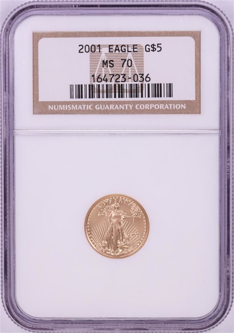 One 2001 $5 American Gold Eagle Coin NGC MS70. NGC Certified.