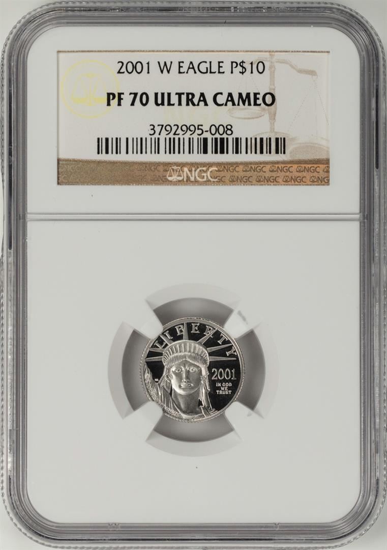 One 2001-W $10 Proof Platinum American Eagle Coin NGC PF70 Ultra Cameo. NGC Certified.