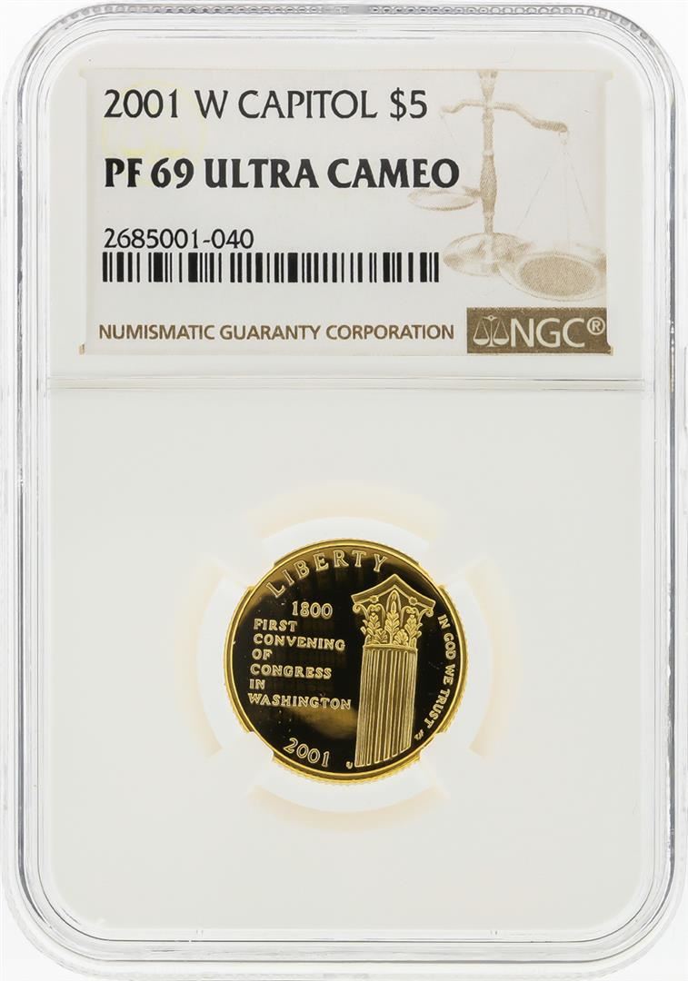One 2001-W $5 Capitol Gold Coin NGC Graded PF69 Ultra Cameo. NGC Certified.