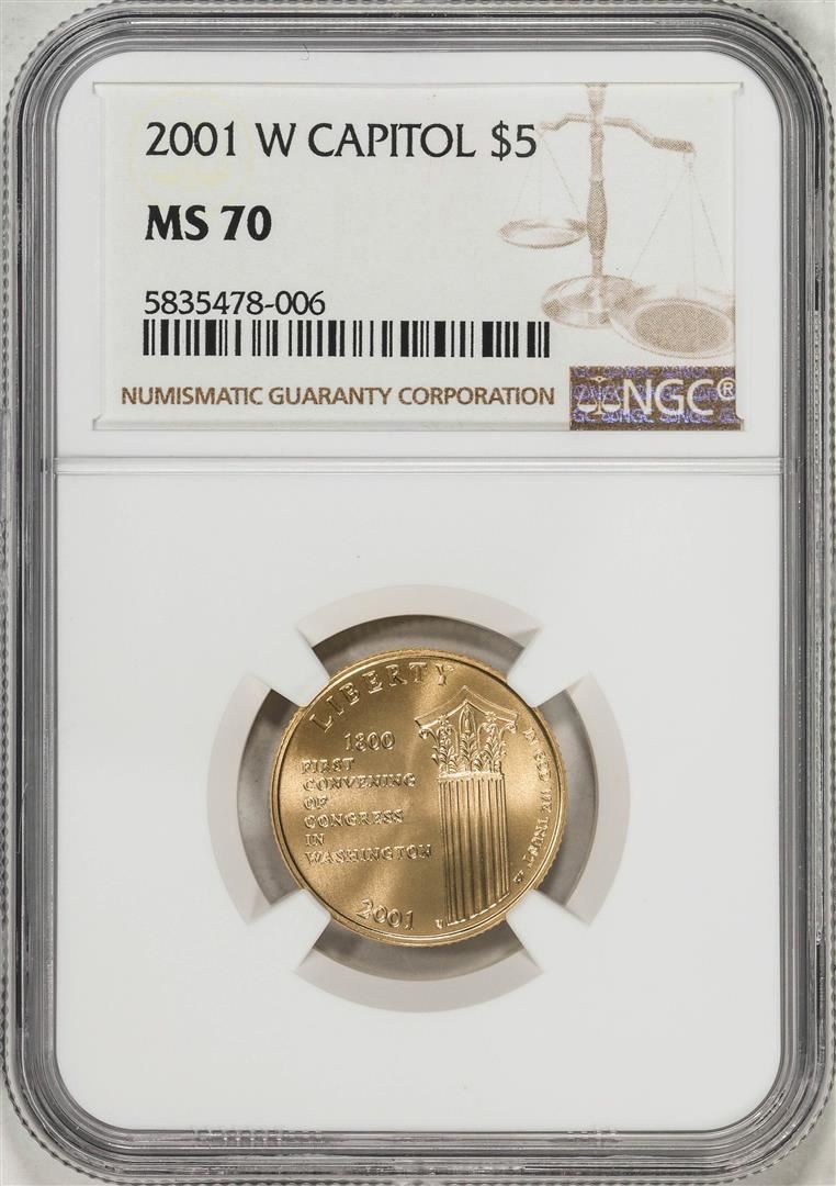 One 2001-W $5 Capitol Visitor Center Commemorative Gold Coin NGC MS70. NGC Certified.