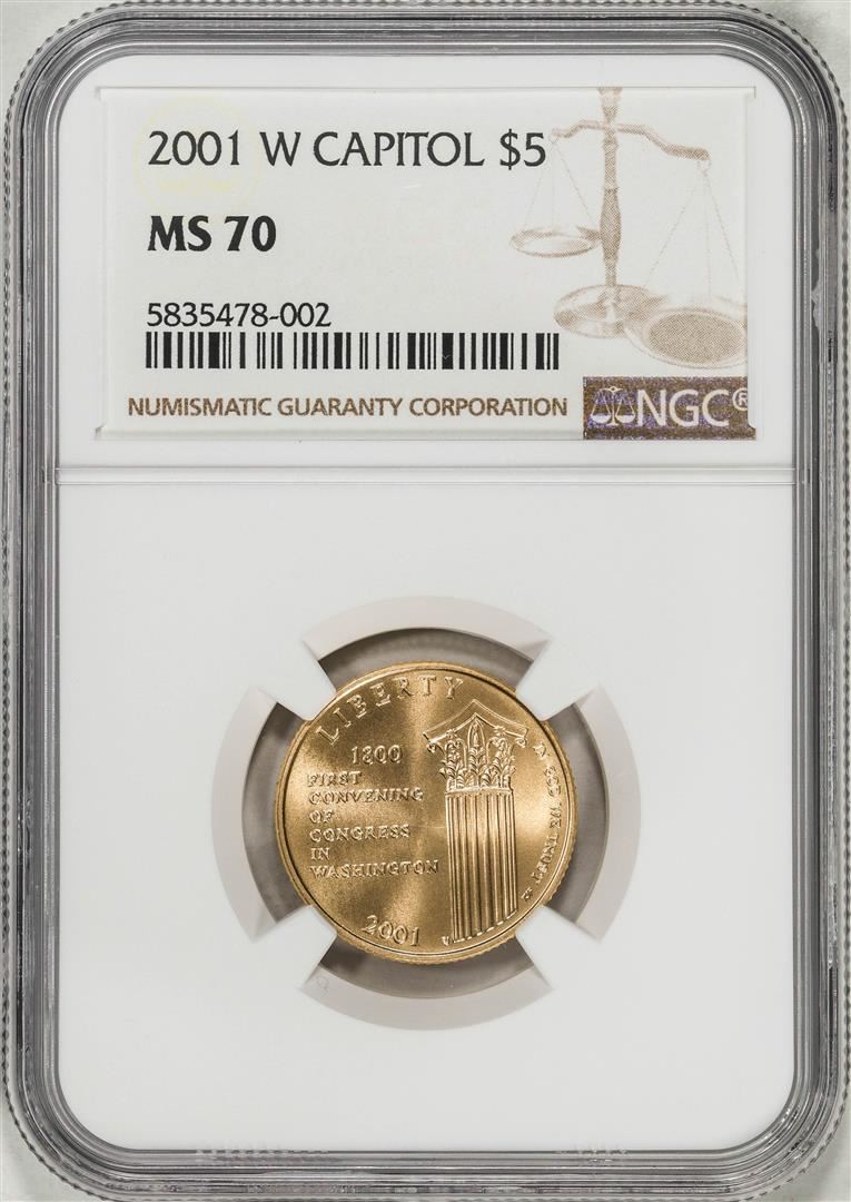 One 2001-W $5 Capitol Visitor Center Commemorative Gold Coin NGC MS70. NGC Certified.