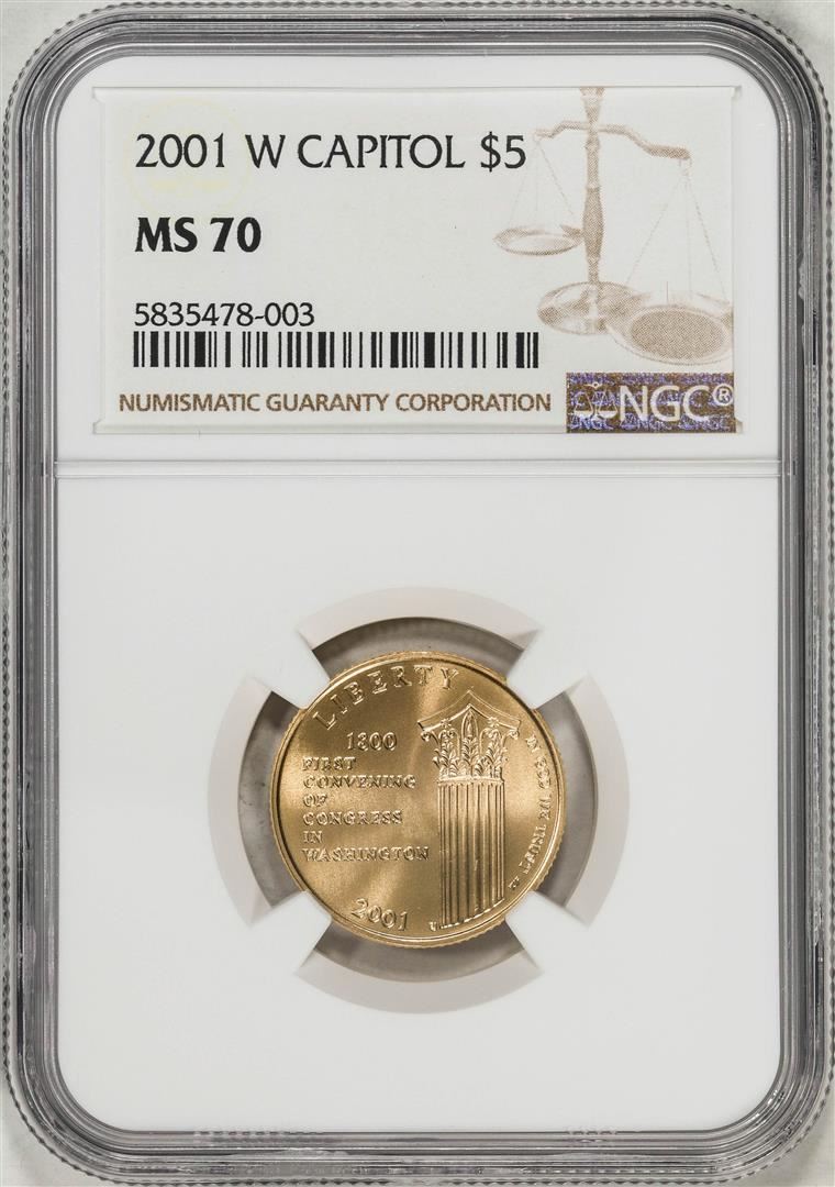 One 2001-W $5 Capitol Visitor Center Commemorative Gold Coin NGC MS70. NGC Certified.
