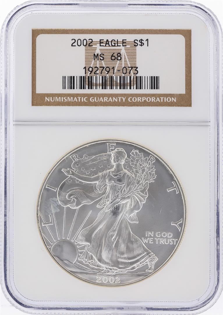 One 2002 $1 American Silver Eagle Coin NGC Graded MS68. NGC Certified.