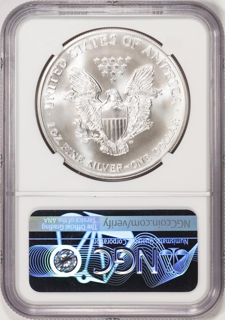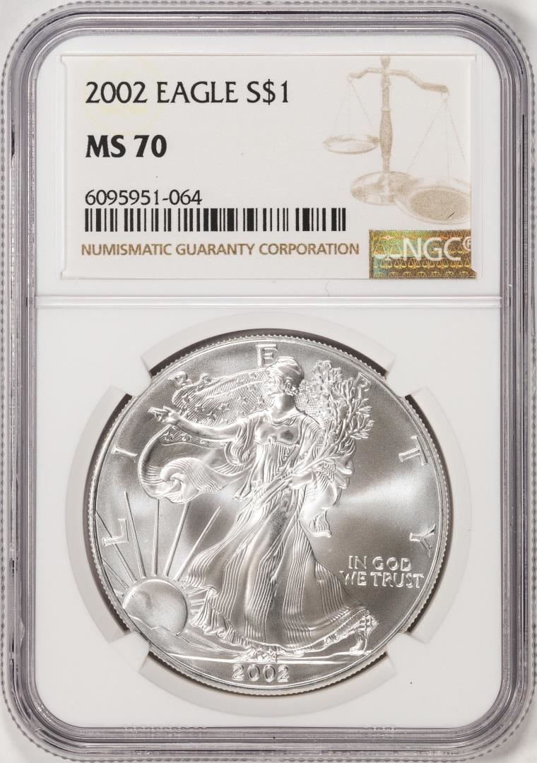 One 2002 $1 American Silver Eagle Coin NGC MS70. NGC Certified.