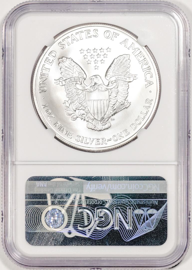 One 2002 $1 American Silver Eagle Coin NGC MS70. NGC Certified.