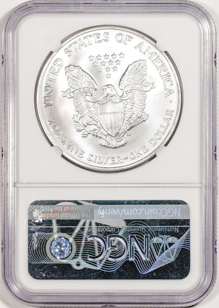 One 2002 $1 American Silver Eagle Coin NGC MS70. NGC Certified.