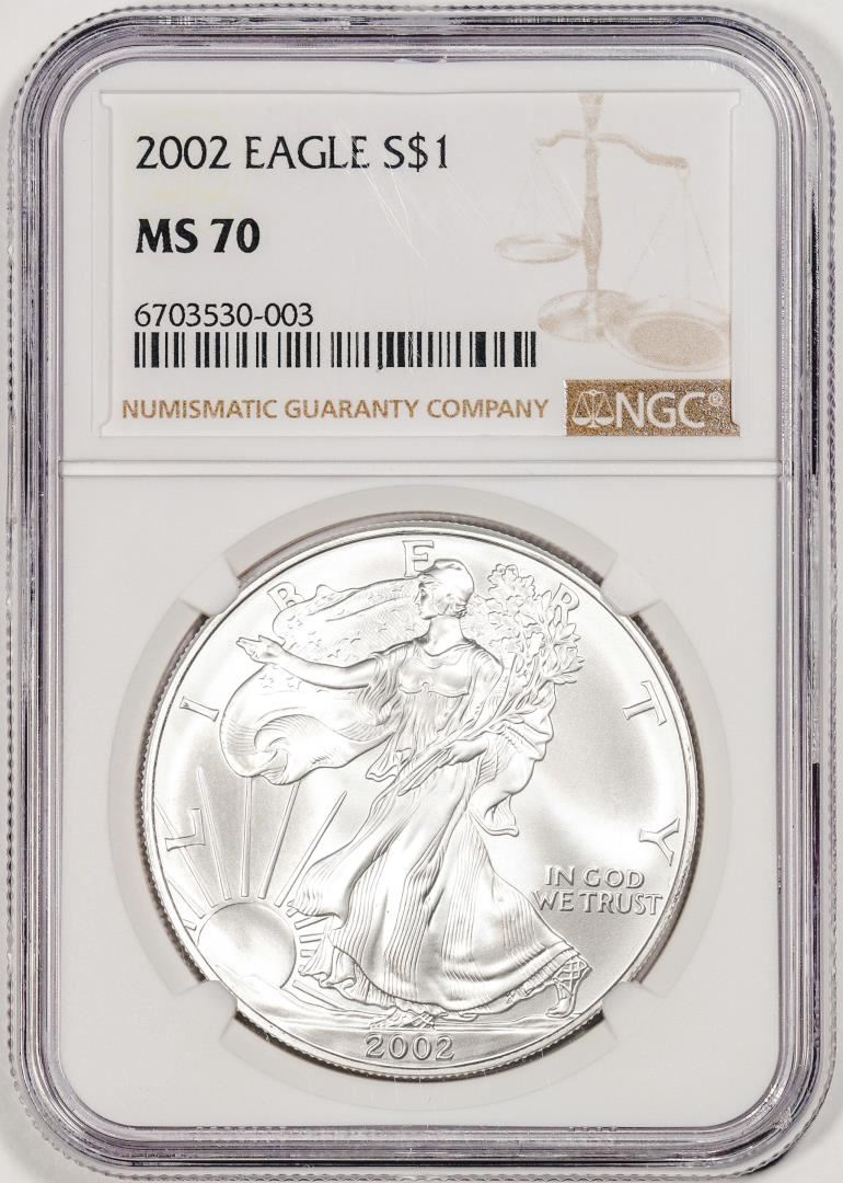 One 2002 $1 American Silver Eagle Coin NGC MS70. NGC Certified.
