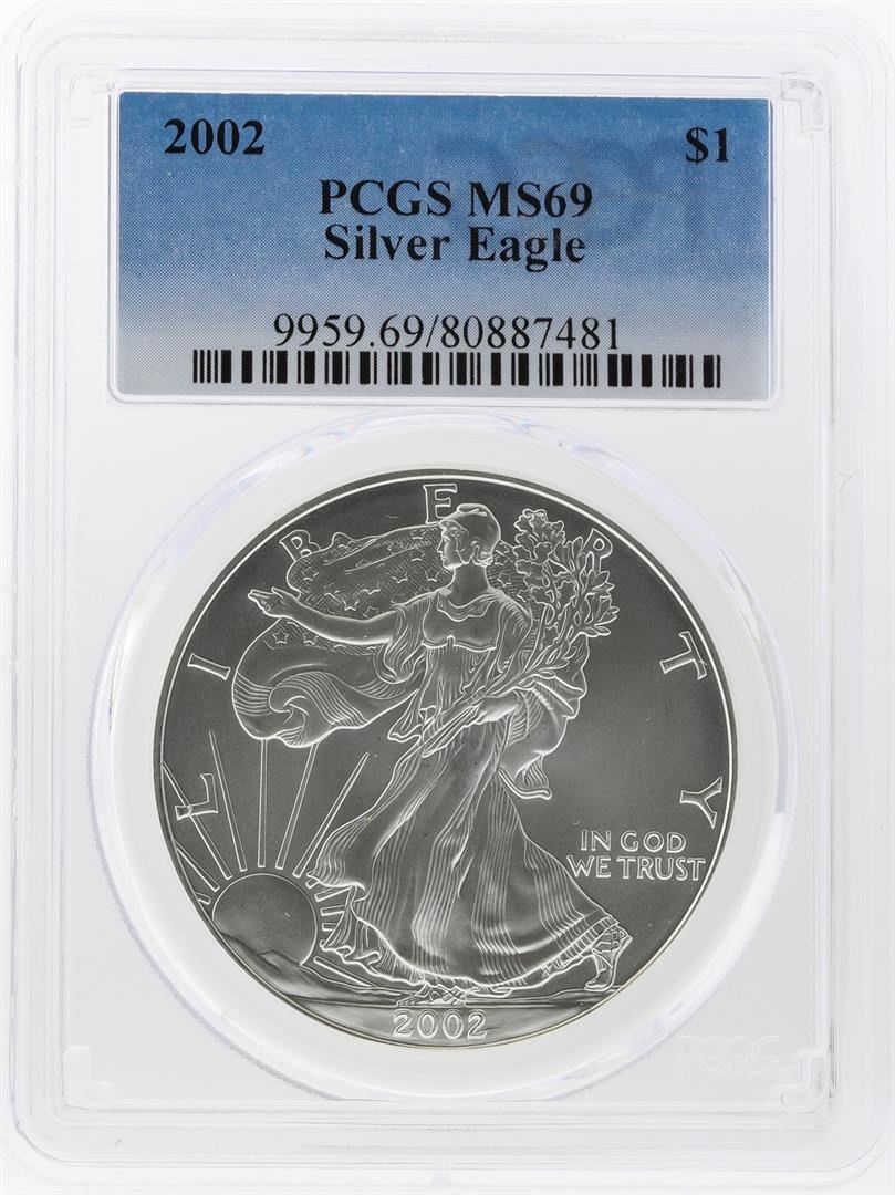 One 2002 $1 American Silver Eagle Coin PCGS Graded MS69. PCGS Graded.
