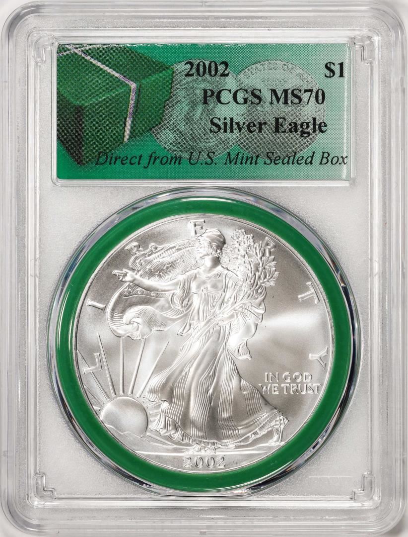One 2002 $1 American Silver Eagle Coin PCGS MS70 Direct From U.S. Mint Sealed Box. PCGS Graded.