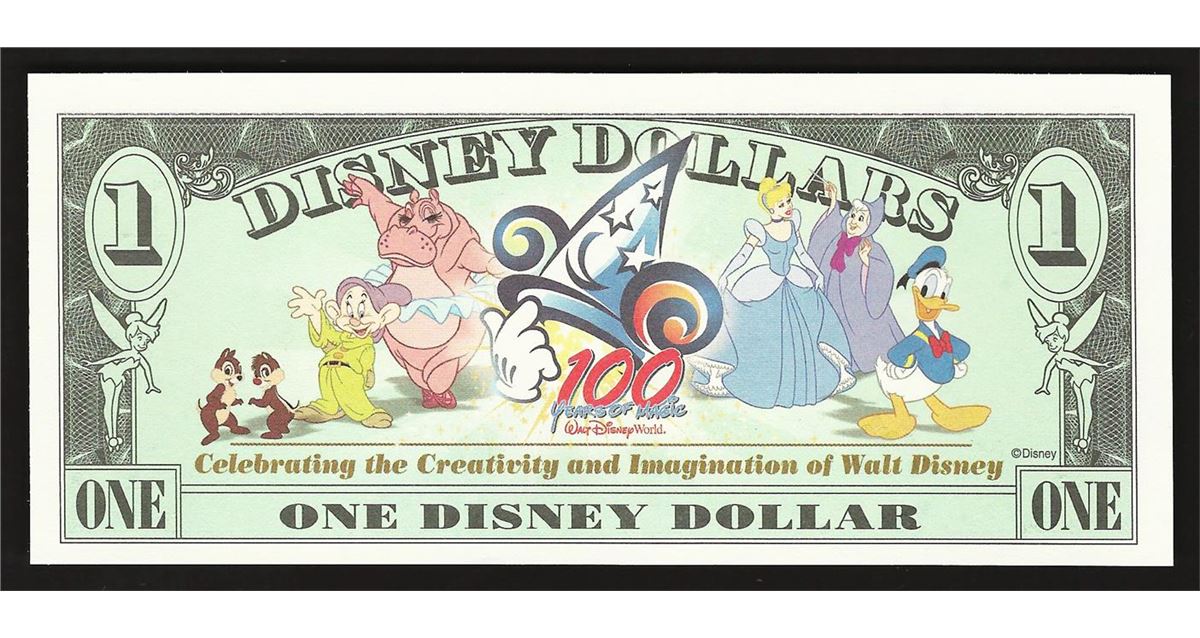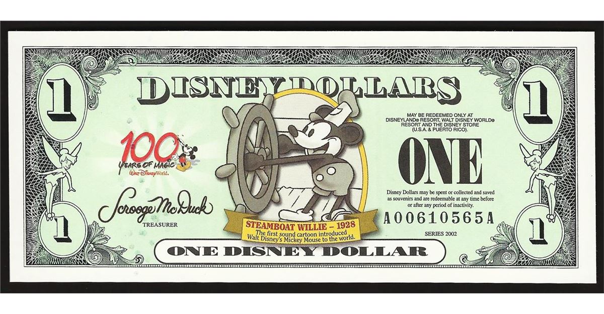 One 2002 $1 Disney Dollars Steamboat Wille Note.