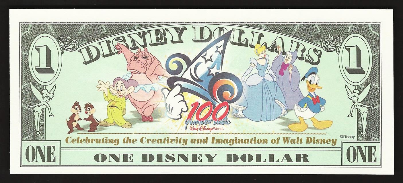 One 2002 $1 Disney Dollars Steamboat Wille Note.