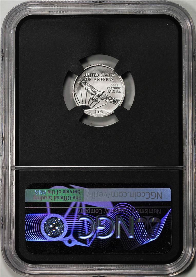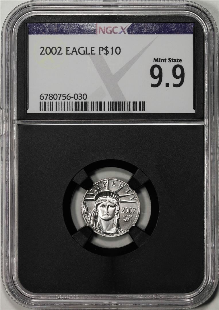 One 2002 $10 Platinum American Eagle Coin NGCX Mint State 9.9. NGCX Certified.
