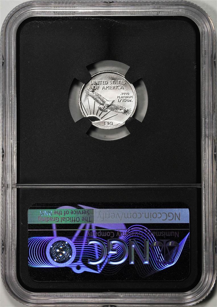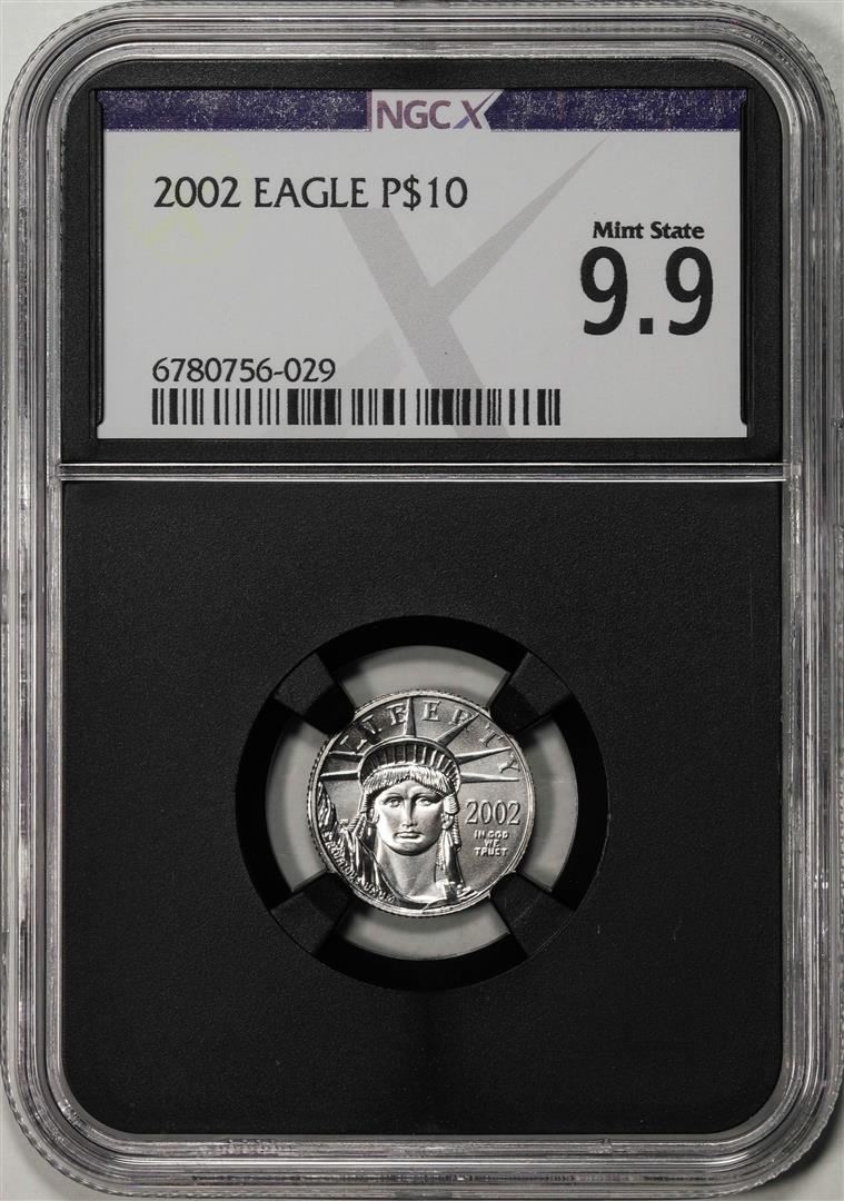 One 2002 $10 Platinum American Eagle Coin NGCX Mint State 9.9. NGCX Certified.
