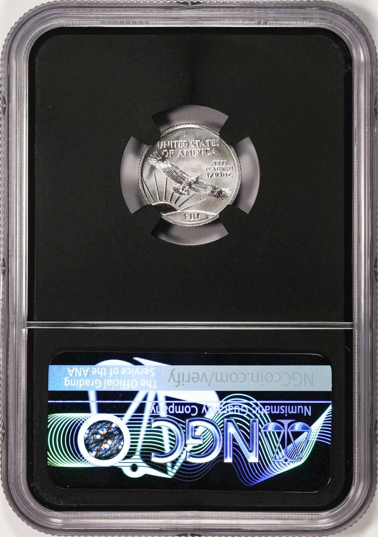 One 2002 $10 Platinum American Eagle Coin NGCX Mint State 9.9. NGCX Certified.