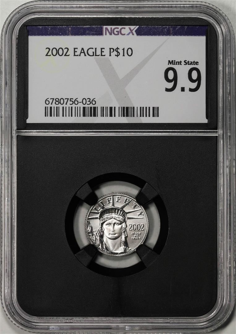 One 2002 $10 Platinum American Eagle Coin NGCX Mint State 9.9. NGCX Certified.