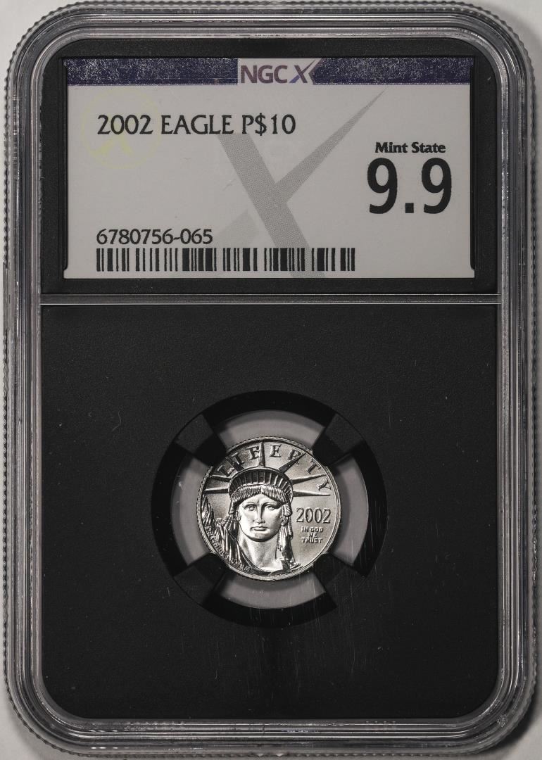 One 2002 $10 Platinum American Eagle Coin NGCX Mint State 9.9. NGCX Certified.