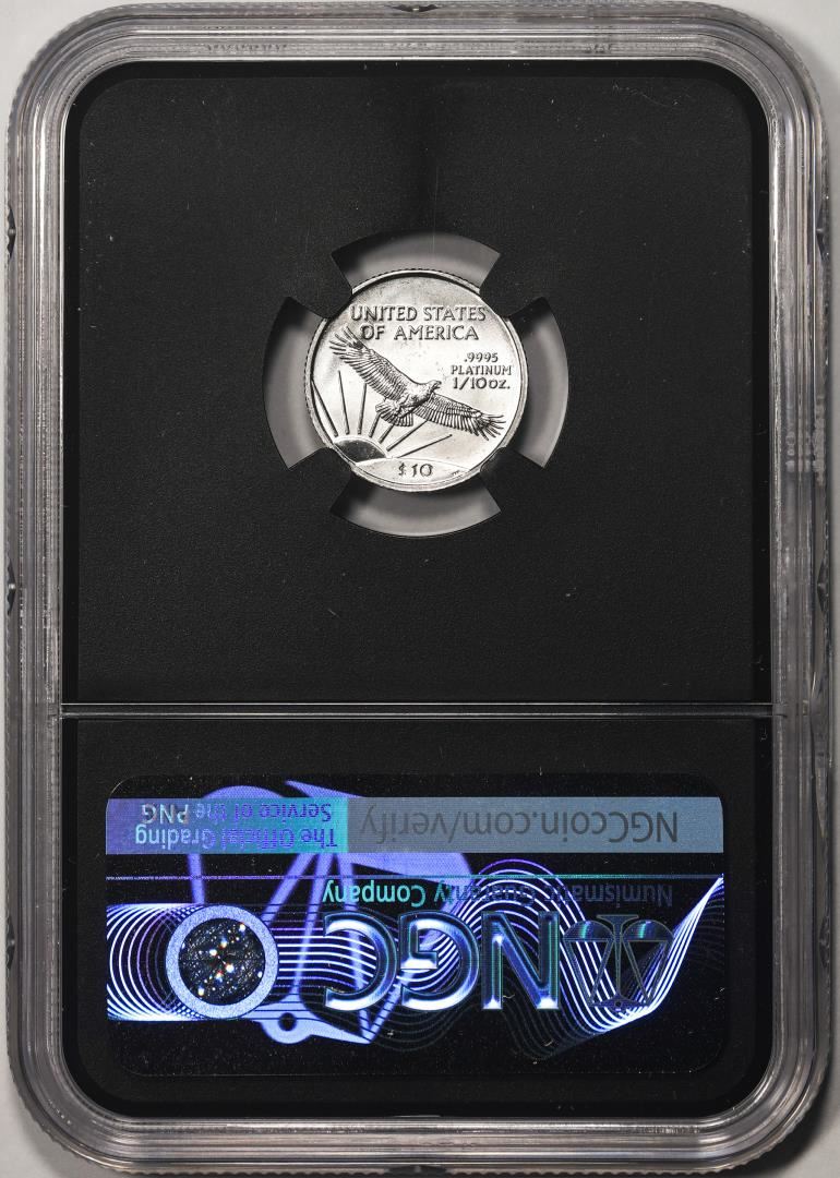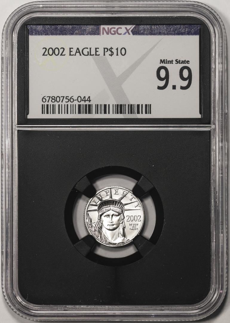 One 2002 $10 Platinum American Eagle Coin NGCX Mint State 9.9. NGCX Certified.