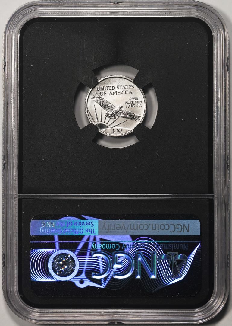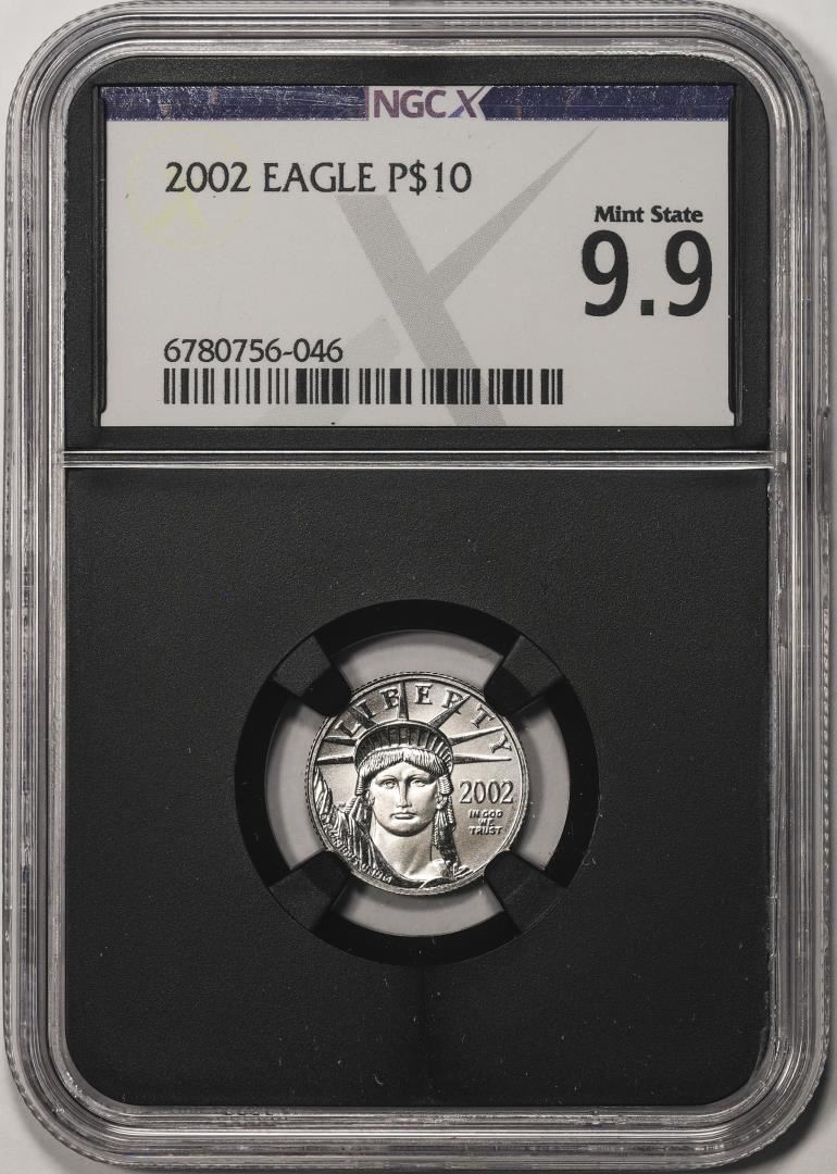 One 2002 $10 Platinum American Eagle Coin NGCX Mint State 9.9. NGCX Certified.