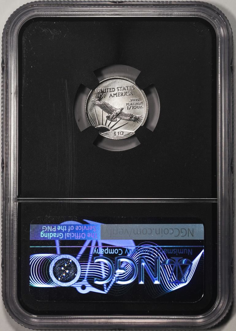 One 2002 $10 Platinum American Eagle Coin NGCX Mint State 9.9. NGCX Certified.